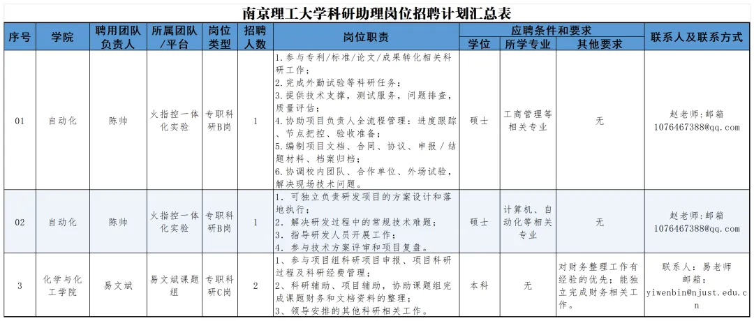C类岗:具有大学本科及以上学历,熟悉相关学科科研工作,具备完成聘请团队安排任务的基本能力。