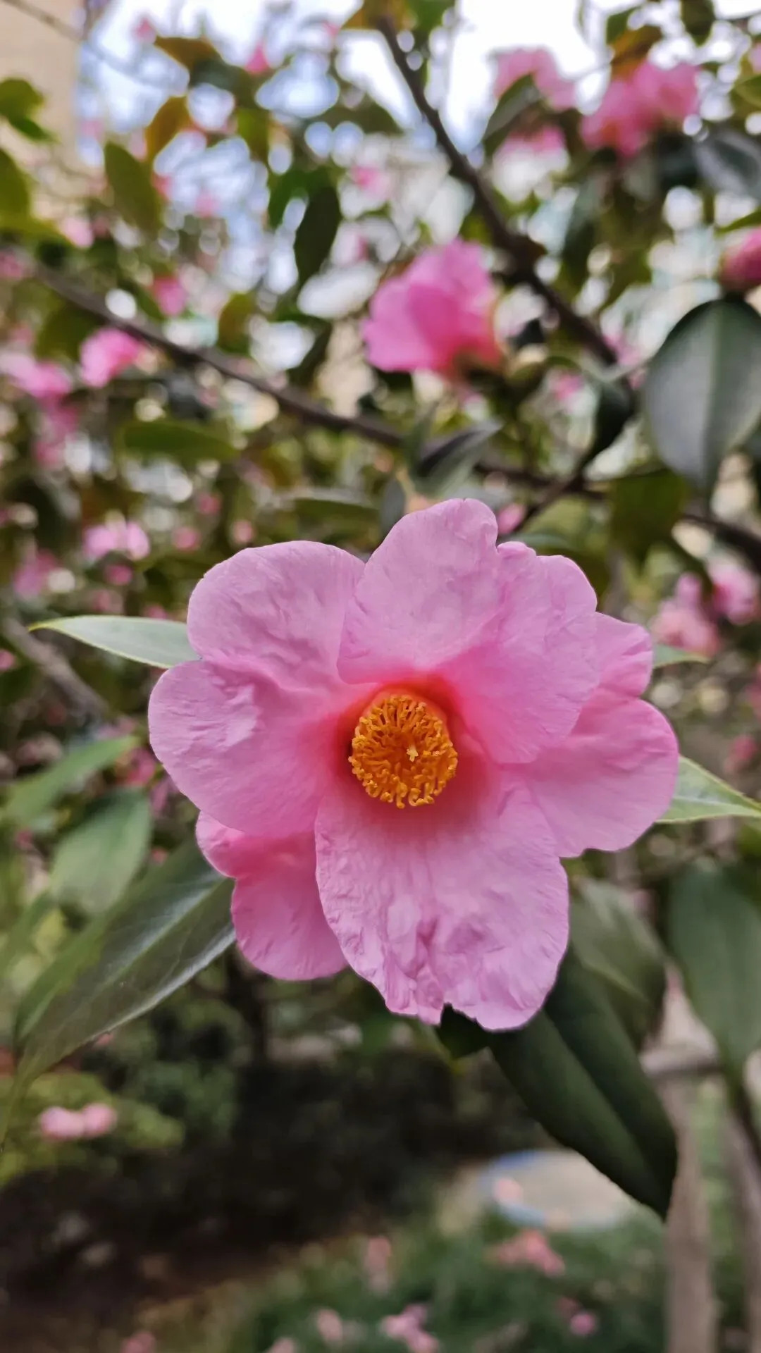 - 花型与花色:花顶生且无柄,直接着生于枝头。花径通常为4-6厘米,花瓣修长呈倒卵形,常见颜色为迷人的粉红色,基部色泽浓郁,中心簇拥着金黄色的花蕊,色彩对比鲜明,花姿含蓄温婉。