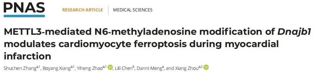 2026年3月3日,南京医科大学第二附属医院心血管内科周祥教授团队在国际著名期刊PNAS上发表题为“METTL3-mediatedN6-methyladenosinemodificationofDnajb1modulatescardiomyocyteferroptosisduringmyocardialinfarction”的研究论文。该团队聚焦于mRNA上的N6-甲基腺苷(m6A)修饰,通过整合分析MI小鼠心肌组织的甲基化RNA免疫沉淀测序(MeRIP-seq)和RNA测序(RNA-seq)数据,揭示了METTL3/Dnajb1轴在调控心肌细胞铁死亡中的关键作用,为心肌梗死的治疗提供了新策略。