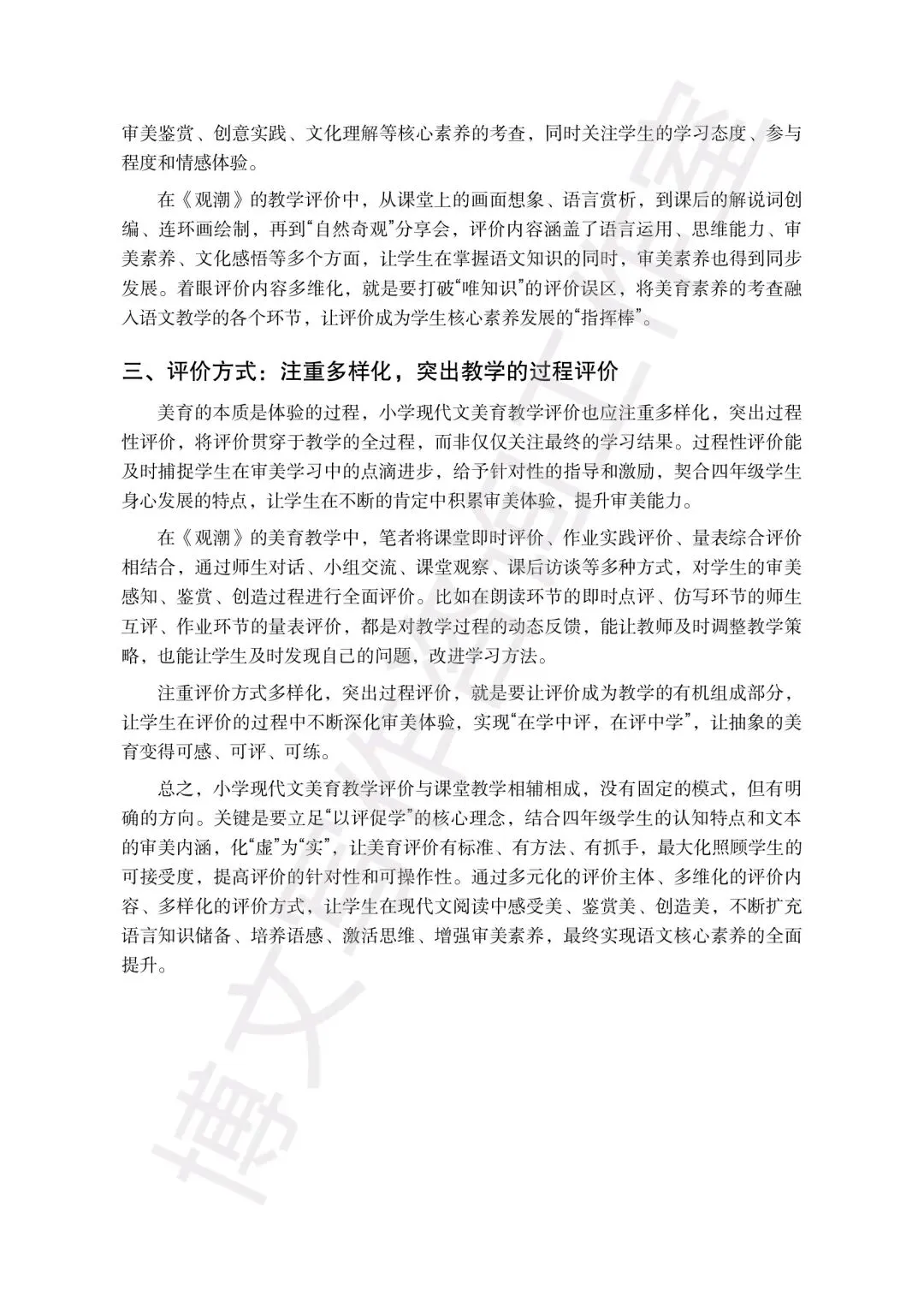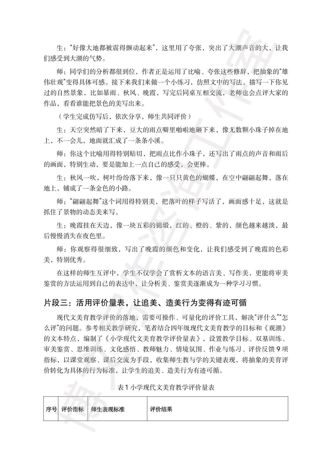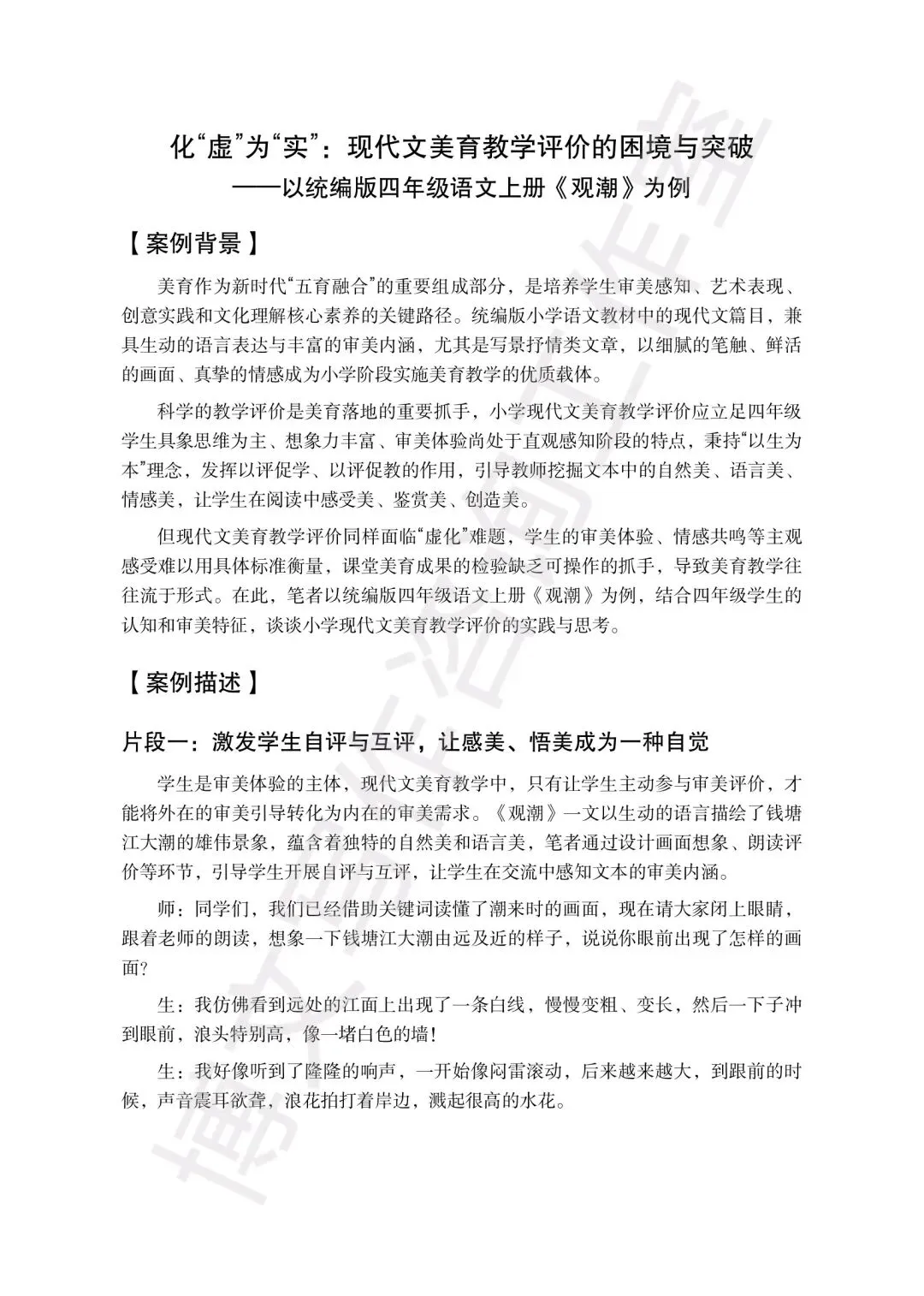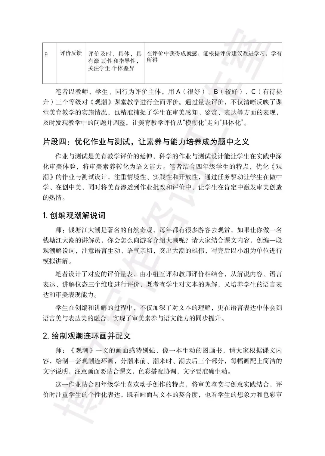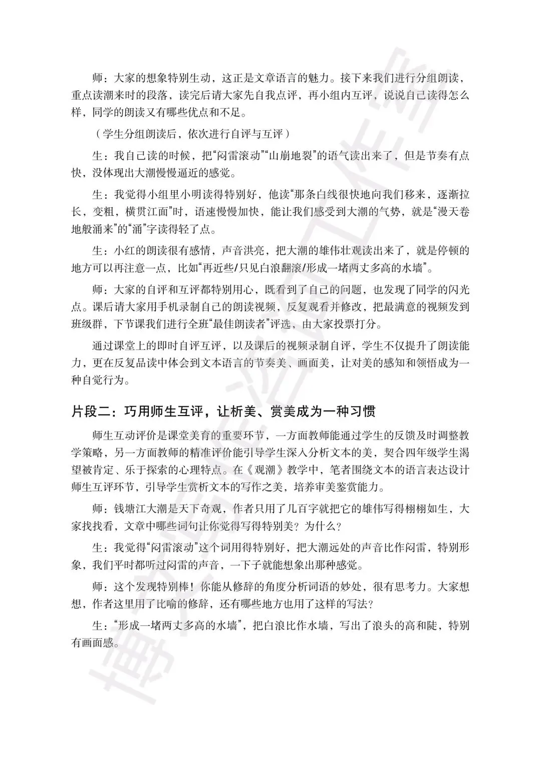比如以《观潮》为例写现代文美育,以《伯牙鼓琴》写文言文审美评价