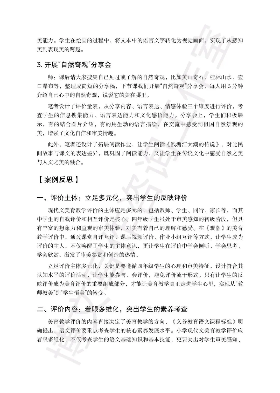 【案例反思】:从评价主体/内容/方式等角度切入,扣核心素养,说出教学收获和改进方向