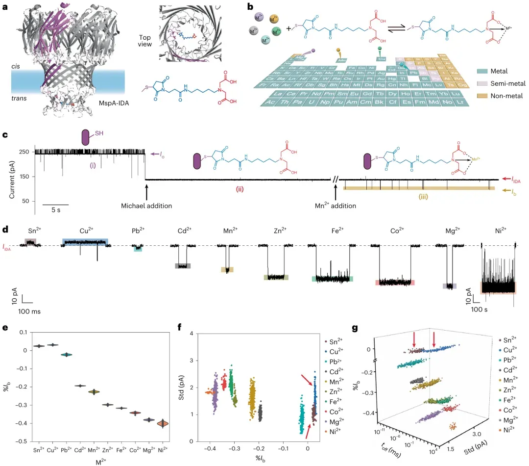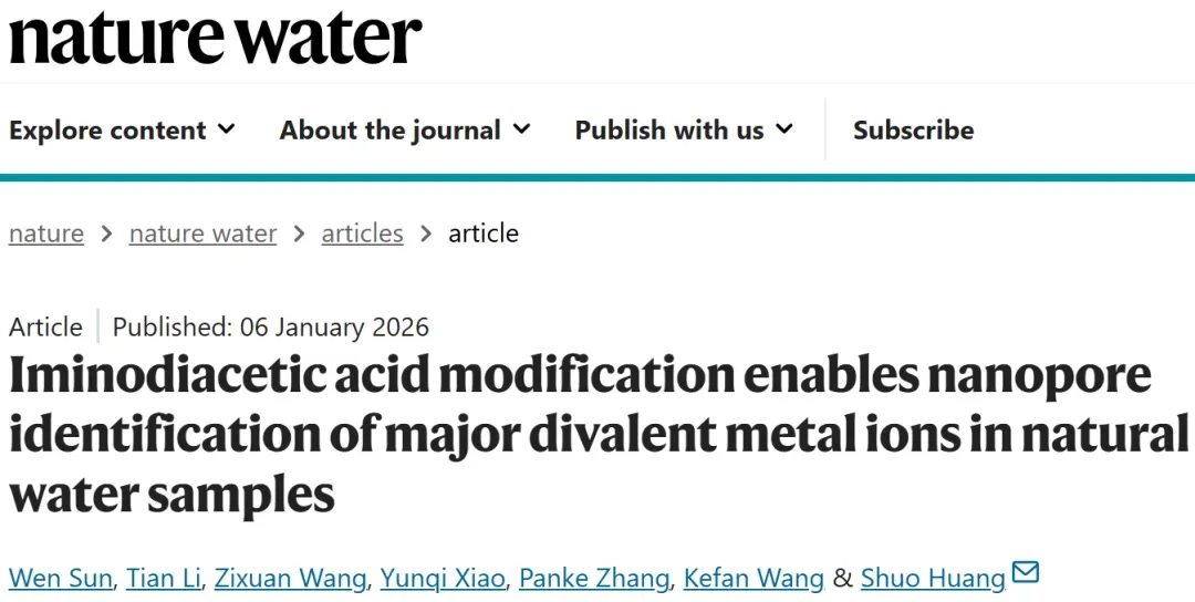 相关研究成果以“Iminodiacetic acid modification enables nanopore identification of major divalent metal ions in natural water samples”为题,发表在Nature Water上。