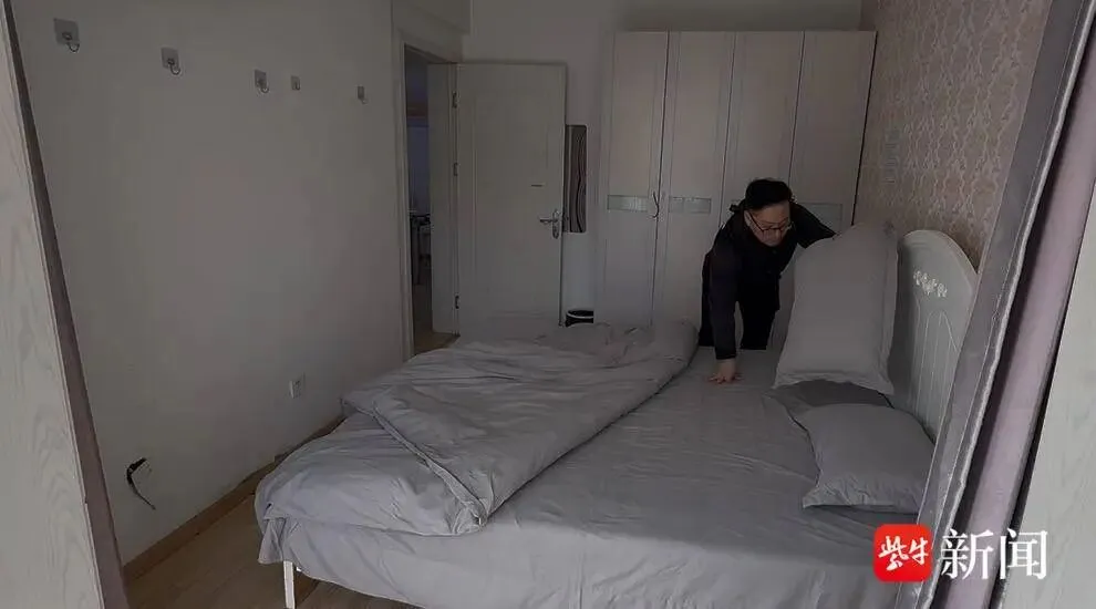 记者紧随柴伟,沿着广州路一路向东,步行10分钟,便来到南京脑科医院对面的一栋高层建筑。爱心小屋坐落在此。此时,来自泰州的病人家属陈正玉和妈妈急匆匆赶来,为我们打开了门。记者发现小屋有三个南向卧室,一厨一卫也都朝南。床铺、衣橱、卫浴、洗衣机、炊具等生活所需一应俱全。入住事项张贴在卧室床边墙壁上,一目了然。早晨的阳光洒进卧室,全身暖洋洋。