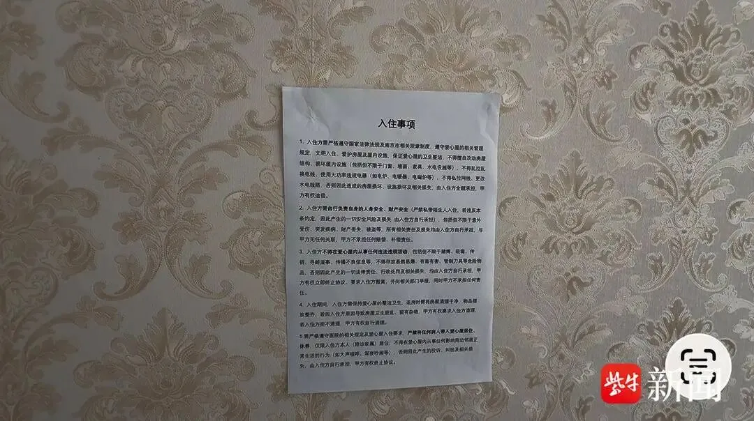 卧室墙上贴着入住事项