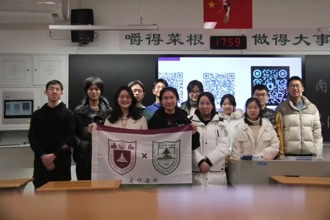 2月5日下午三点半,南京大学“南星梦想计划”南师附中团队奥南校区宣讲活动顺利开展。本次宣讲由健雄书院2025级本科生陆启畅担任奥南分队领队,队员包括陈语嘉、樊一锦、吕鸿毅、王端、龚梦涵、卢思儒、邱顺、杜海莹、胡跃、刘启铭、季东楠,团队面向南师附中国科大班学子及家长,深情讲述了南京大学“诚朴雄伟、励学敦行”的百廿办学传统。