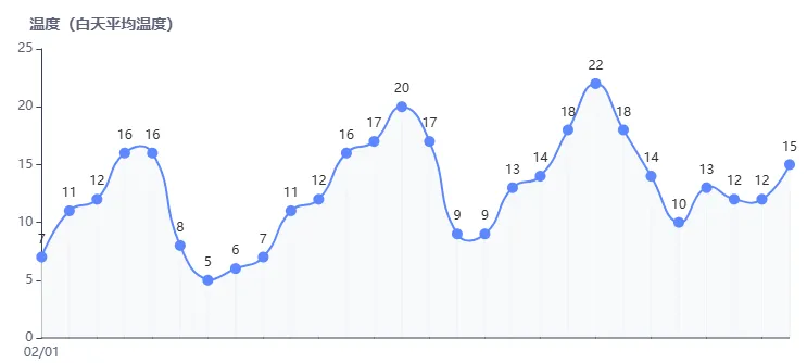 2月白天气温图 图源:www.tianqi.com