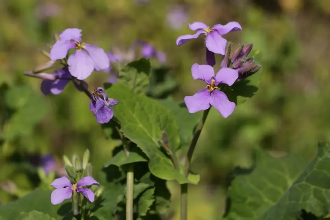 诸葛菜:又称二月蓝。因为盛花期在农历二月而得名。林下淡紫色花海十分梦幻。