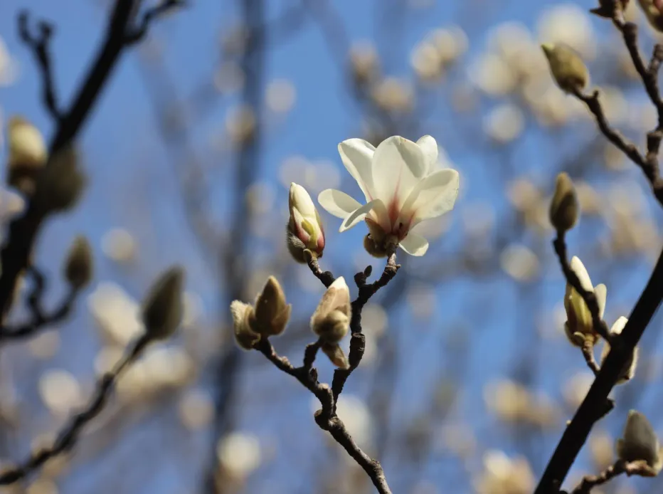 2月20日,园区的望春玉兰进入花期,花期比去年早了近十天。
