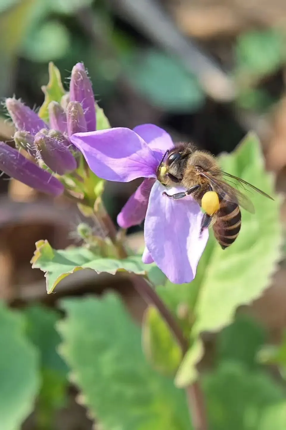 更适应早春低温环境的中华蜜蜂也开始访花采蜜。