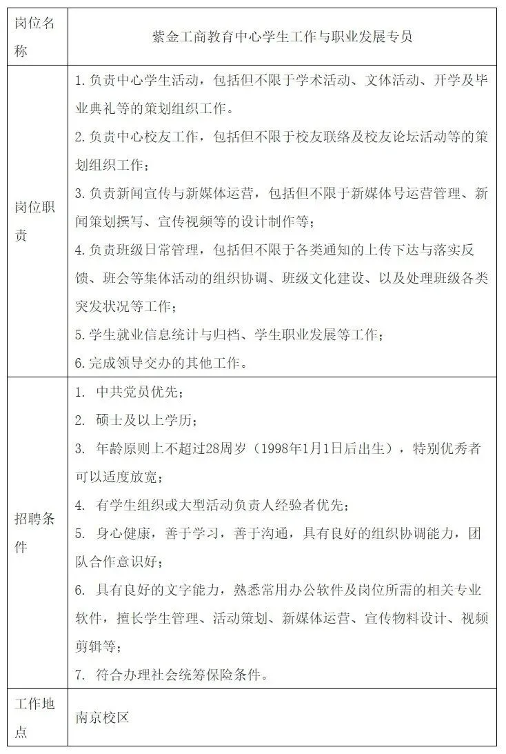 南京理工大学经济管理学院紫金工商教育中心负责此次招聘的问题咨询。