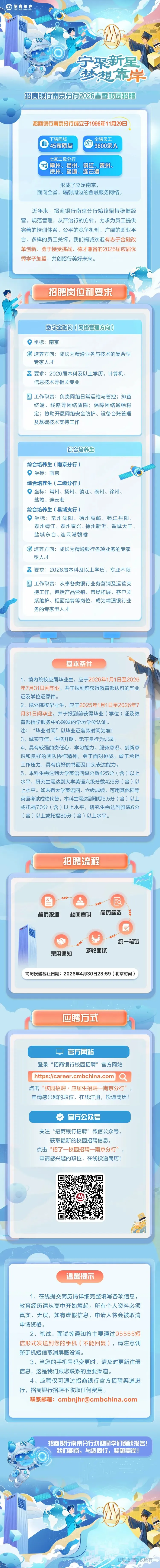 宁聚新星,梦想靠岸|招商银行南京分行2026春季校园招聘