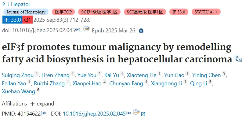 eIF3f 竟是肝癌的 “帮凶”,靠调控脂肪酸合成让肿瘤恶性升级,还会躲避免疫攻击!🔥