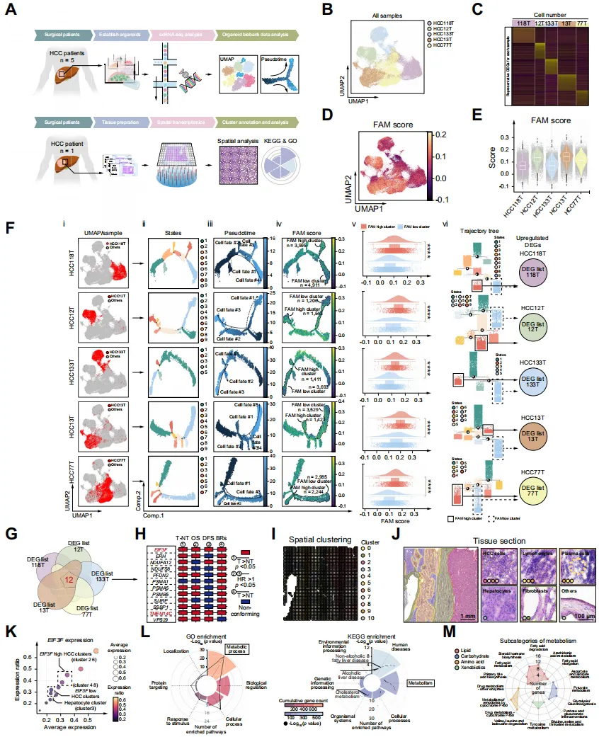 (通过将类器官单细胞RNA测序(scRNA-seq)分析与大规模数据库分析相结合,探索同时影响 HCC 中FAM(脂肪酸代谢)和恶性肿瘤的基因。)