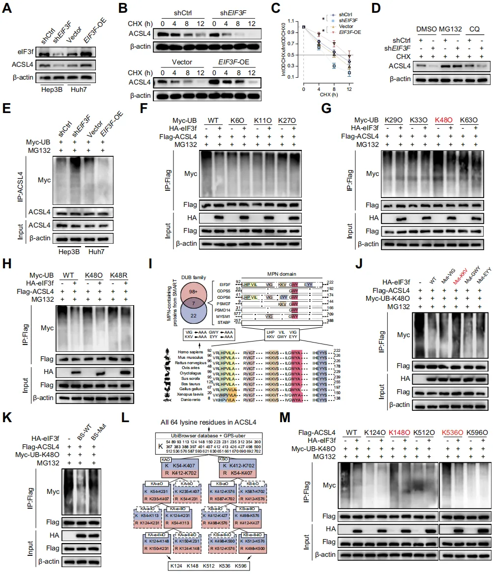 eIF3f 通过 MPN 结构域的去泛素化活性,抑制 ACSL4 的 K48 连接泛素化及蛋白酶体降解;