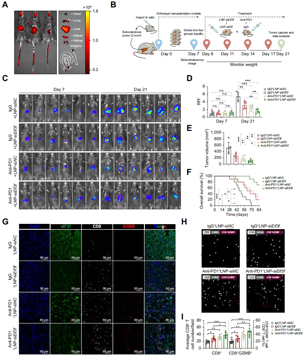 LNP-siEIF3F 可靶向肝脏递送 siRNA,抑制肿瘤生长,延长模型小鼠生存期;