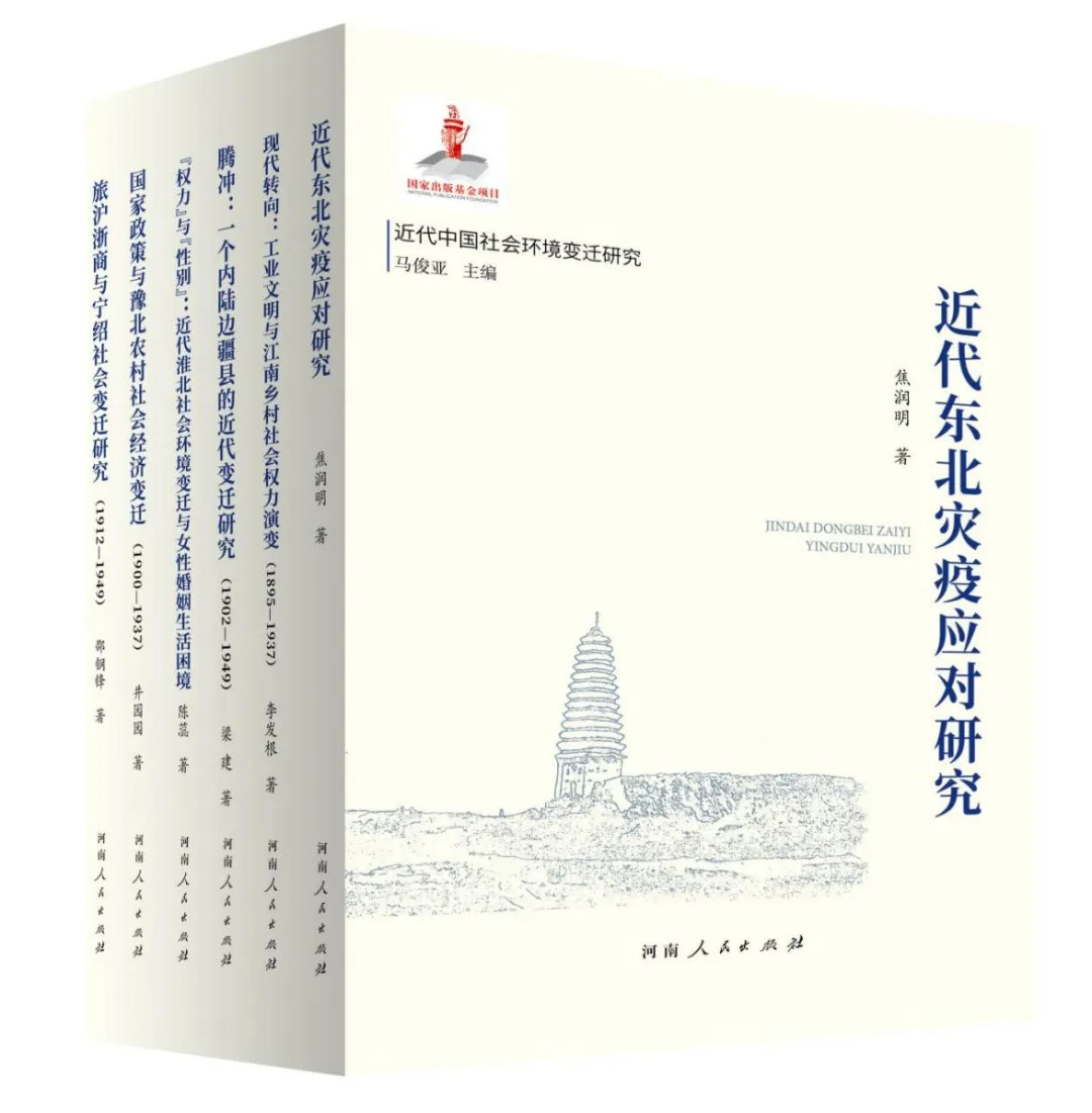 丛书是一部研究近代中国社会环境变迁的学术性丛书,系2016年度国家社会科学基金重点项目成果,先后于2024年入选“十四五”国家重点出版物出版规划增补项目,2025年入选国家出版基金资助项目。丛书共6本,分别是《现代转向:工业文明与江南乡村社会权力演变(1895—1937)》《腾冲:一个内陆边疆县的近代变迁研究(1902—1949)》《“权力”与“性别”:近代淮北社会环境变迁与女性婚姻生活困境》《国家政策与豫北农村社会经济变迁(1900—1937)》《近代东北灾疫应对研究》《旅沪浙商与宁绍社会变迁研究(1912—1949)》。各书作者在主编马俊亚教授指导下,选取近代江南、淮北、豫北、东北、西南腾冲、浙东宁绍6个地区作为研究对象,考察不同地区社会环境变迁的不同路径,以期更加准确地认识近代中国的社会差异、区域特色、社会形态乃至国情状况和社会发展的一般趋势,为深入认识中国国情、探索可持续发展路径提供学术支撑。