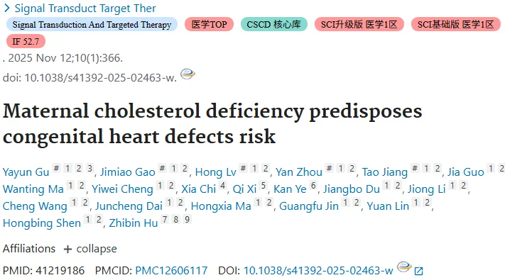 这项研究首次从人群流行病学、基因机制到动物模型,系统揭示了母体胆固醇缺乏是子代先天性心脏病的重要风险因素。研究不仅发现了CYP51A1I383V基因突变导致胆固醇合成障碍进而干扰心脏发育的关键机制,更重要的是证实了孕期适量补充胆固醇可显著降低先心病发生风险。这一发现颠覆了“胆固醇越低越好”的传统认知,为先心病的早期预防和营养干预提供了全新的科学依据。