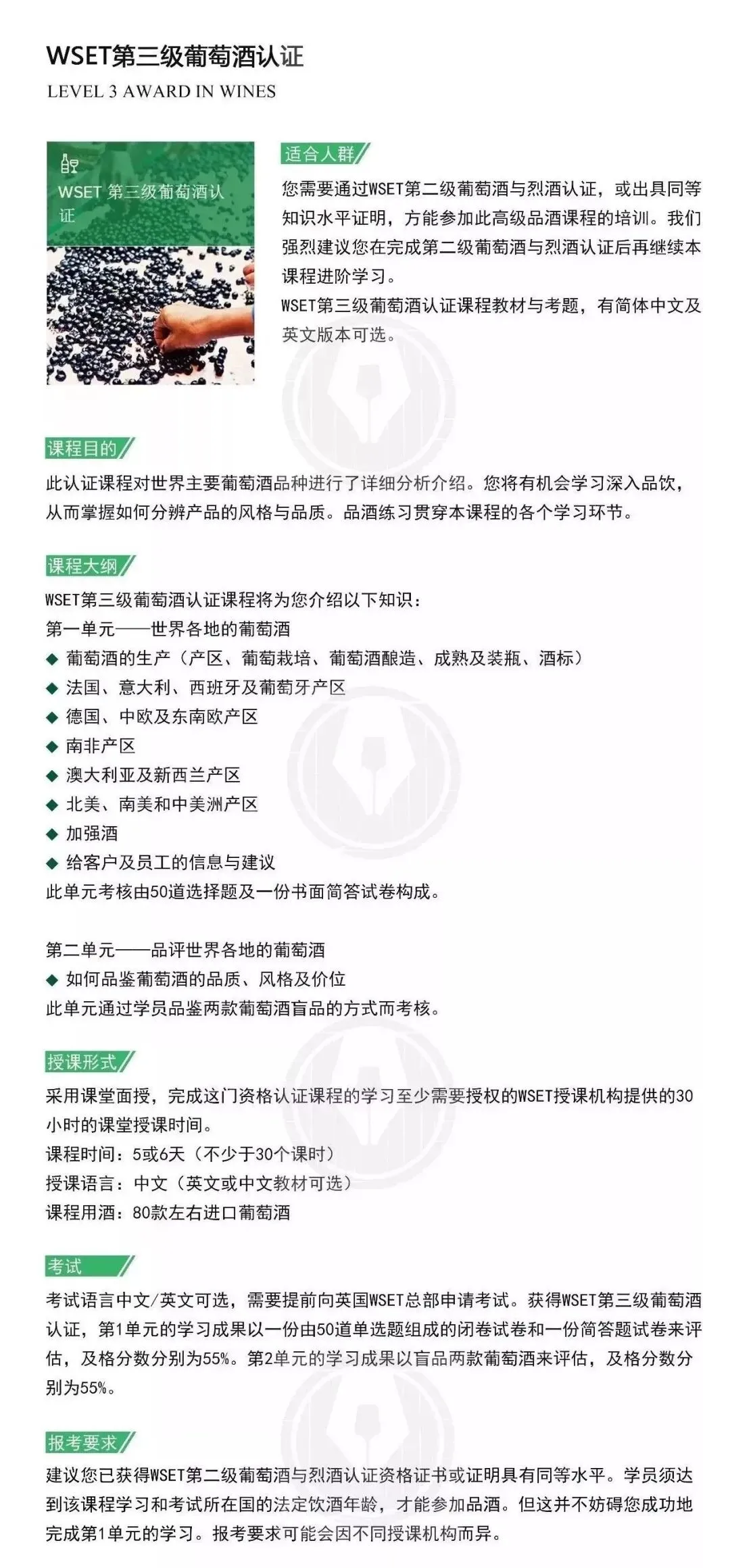 WSET第三级葡萄酒认证课程内容