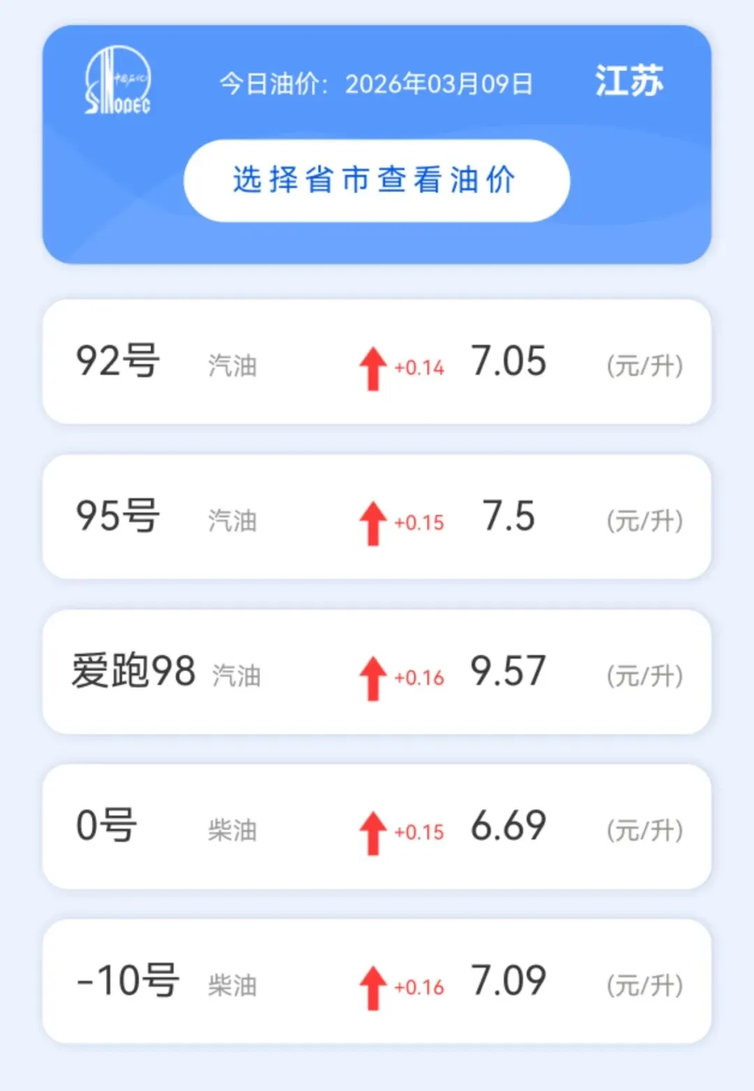受上周国际油价连续暴涨带动,当前国内汽柴油预计上调695元/吨、670元/吨,折合每升上调0.55元/升、0.57元/升。调价窗口:3月9日24时(今晚12点)!