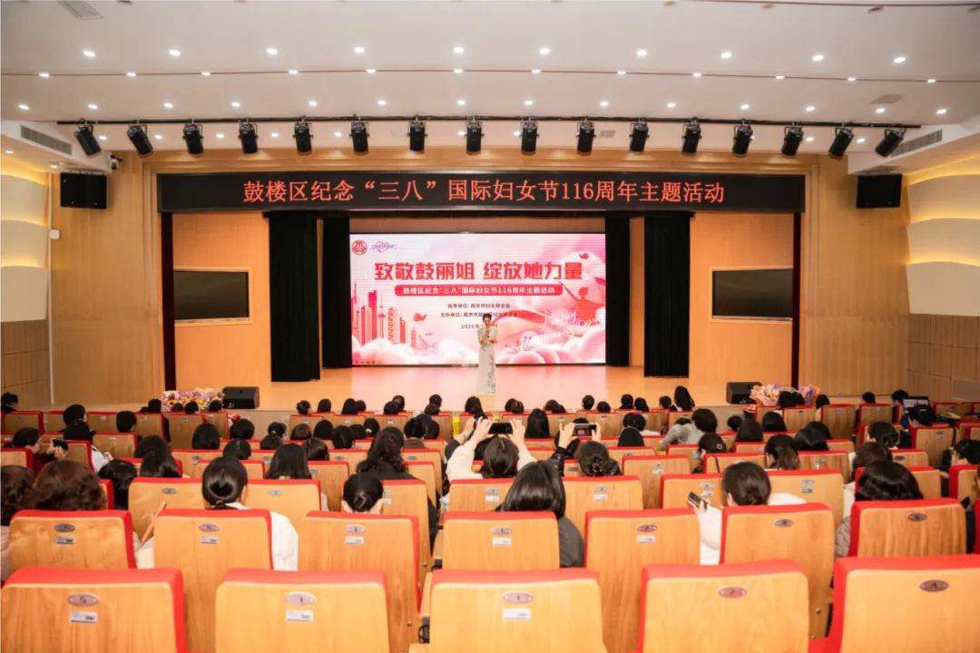 鼓楼区妇联举办“致敬‘鼓丽姐’ 绽放‘她’力量”纪念“三八”国际妇女节116周年活动。全国三八红旗集体南京市鼓楼区新门口社区带来话剧《好大一个家》,讲述“新+工作法”助力基层社会治理的生动实践。现场启动鼓楼区第八届“传承红色基因、厚植家国情怀”系列活动。