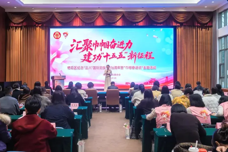栖霞区妇联举办“汇聚巾帼奋进力 建功‘十五五’新征程”纪念“三八”国际妇女节116周年暨“巾帼奋进说”主题活动。现场为女企业家、女科技工作者代表赠送惠企政策服务包,全区各级妇联、社会服务组织、巾帼志愿者代表共同启动“栖心协力”妇女儿童服务项目。