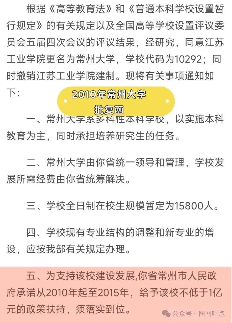三、迁址常州并更名(1981年,关键转折)。1981年8月:经国务院批准,南京化工学院无锡分院从无锡马山迁至常州西郊 。1981年9月:正式定名江苏化工学院,成为常州第一所全日制本科高校 。1992年,石油工业部下属的中石化看中了江苏化工学院,于是将其收编,更名江苏石油化工学院。当时流行双重领导,学校这样就变成了中石化和江苏省双重领导的高校,不过以中石化为主。1992年更名为江苏石油化工学院 。2000年,江苏石油化工学院实行中央与地方共建、以江苏省管理为主的管理体制,实质上降级为省属院校。在这种情况下,没有了石油工业部的后台,学校也开始酝酿更名。1998年到2003年,是石油行业“减员增效”的高峰期,于是去掉石油两字,发展非石油专业 ,争取更好的生源,2002年学校更名为江苏工业学院 。2010年:经教育部批准,更名为常州大学。常州大学目前是一所多科性本科学校,以工科为主体,同时涵盖理、工、文、法、经、管、教育、艺术等多个学科门类。在发展历程中,学校长期以工科化工为特色,尤其在石油化工、化学工程与技术等领域具有深厚积淀,是华东地区重要的石油化工人才培养基地。