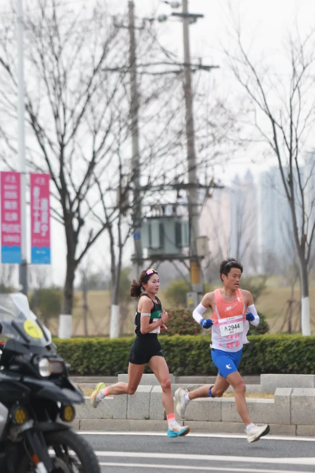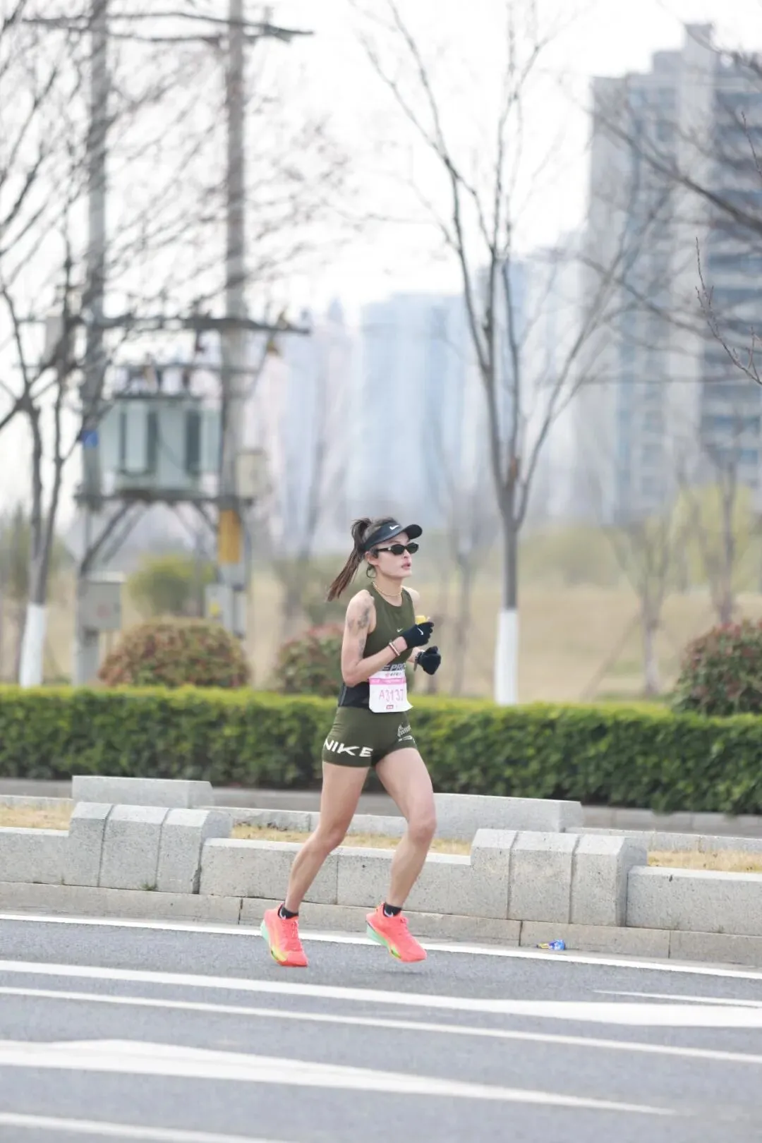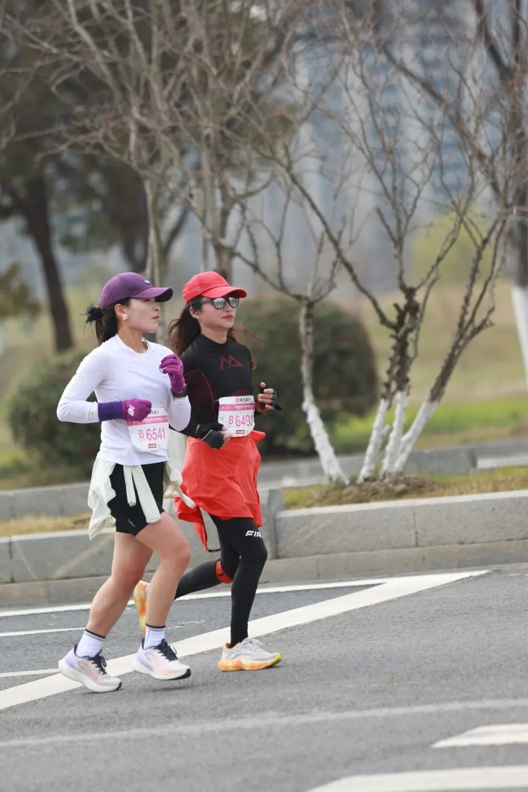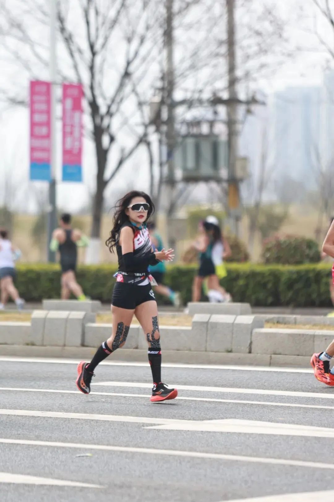 亚军张水华也不甘示弱,保持着稳定的配速,利落的跑姿尽显女性跑者的力量与柔美,两位女神用实力诠释了马拉松的魅力。