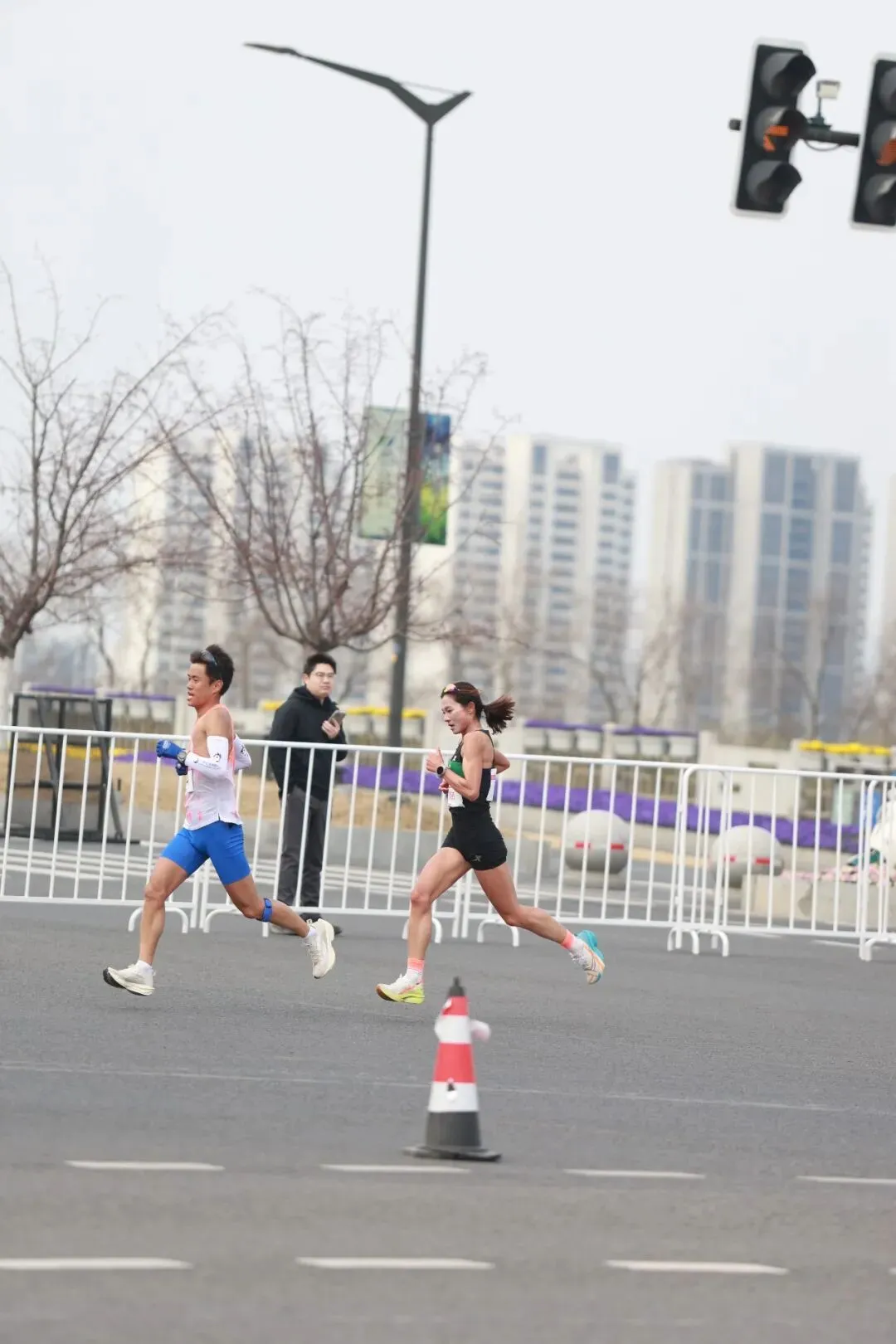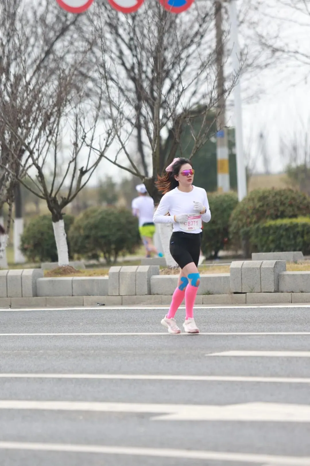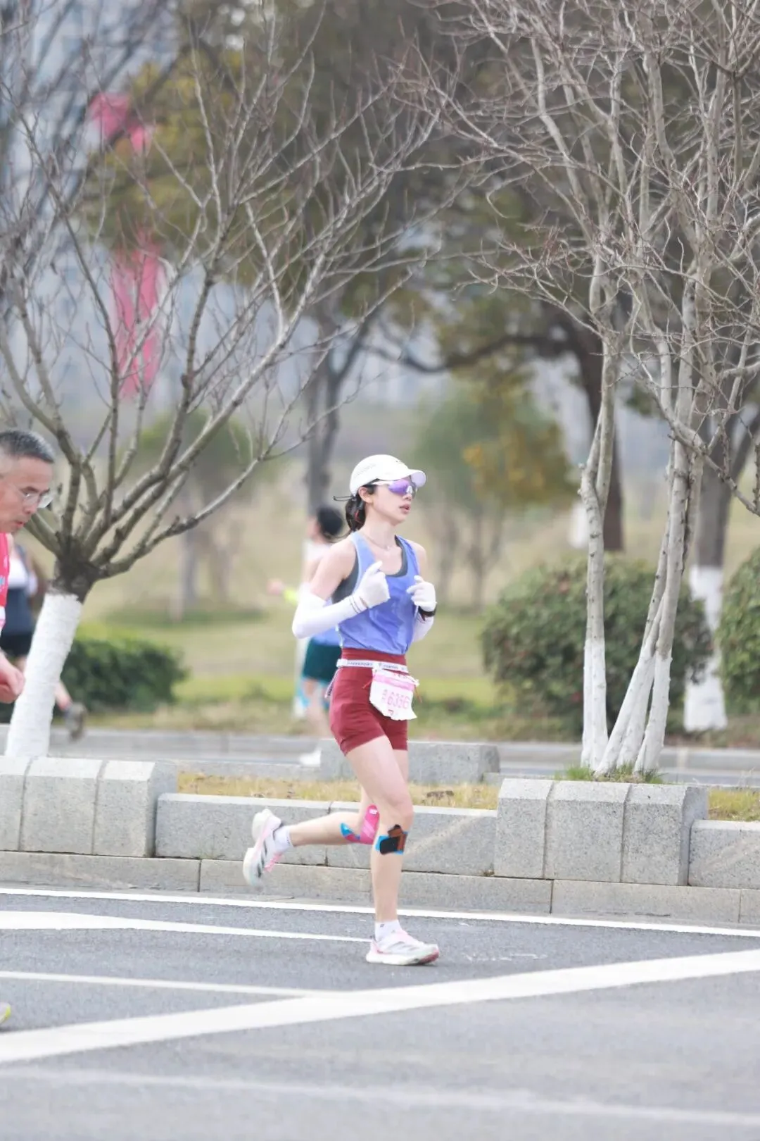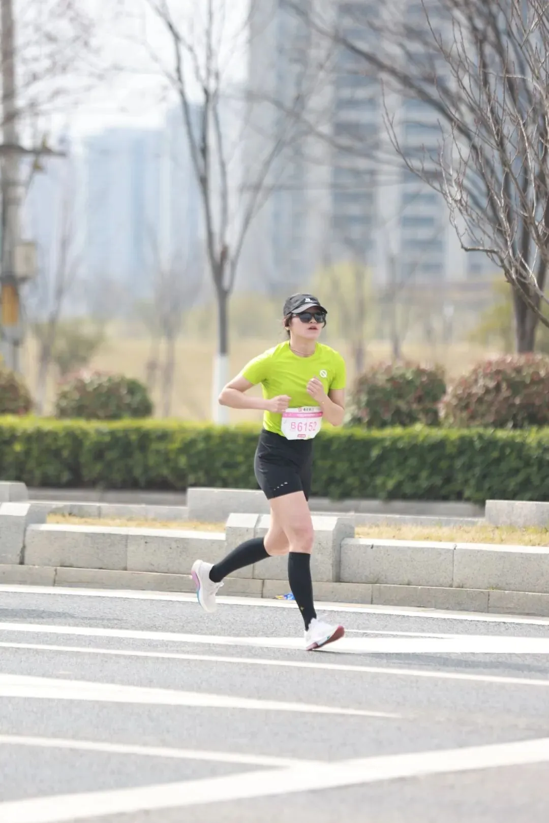 亚军张水华也不甘示弱,保持着稳定的配速,利落的跑姿尽显女性跑者的力量与柔美,两位女神用实力诠释了马拉松的魅力。