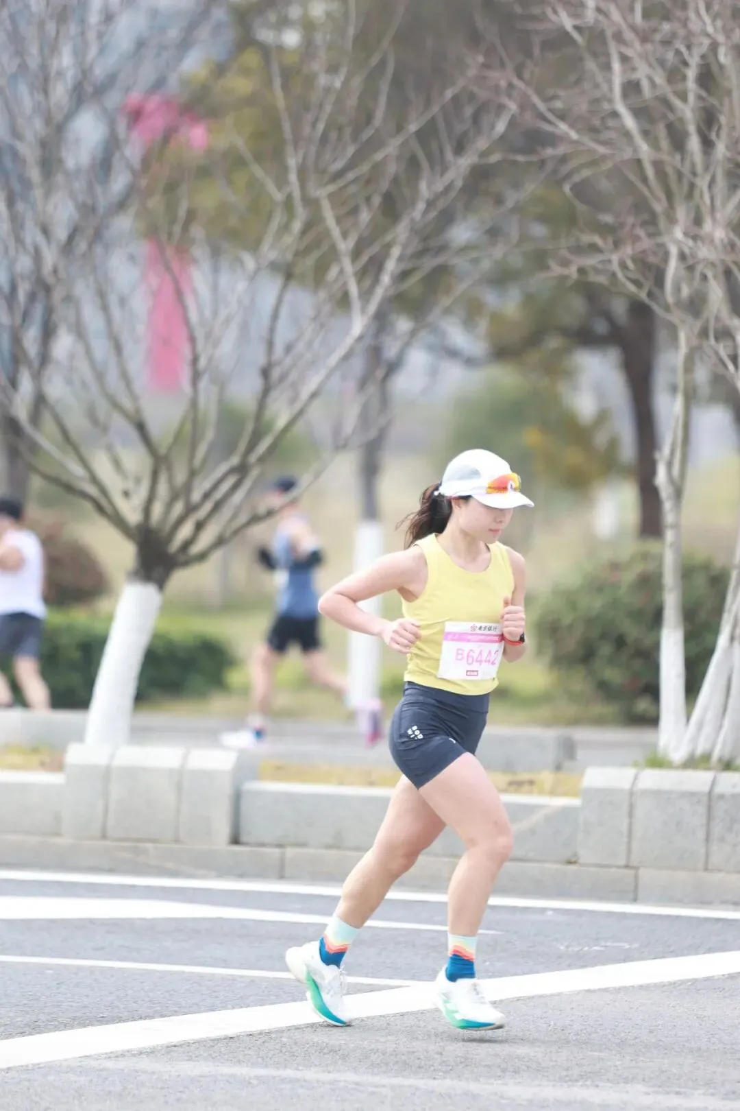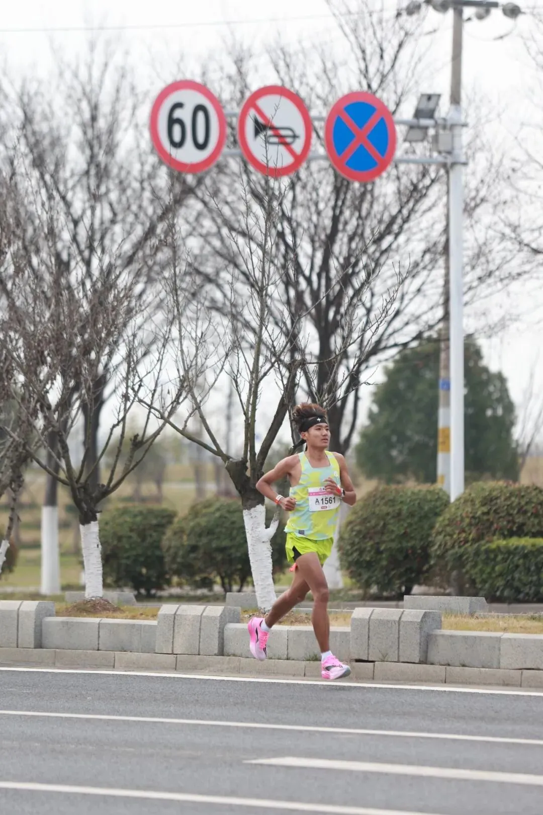 女子组的赛场同样惊艳,冠军黄菲以轻盈又坚定的跑姿驰骋赛道,34.2 公里处依旧状态在线,步伐轻快且节奏感拉满