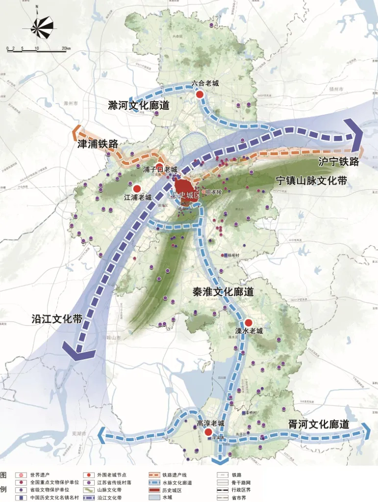 三河:包括秦淮河及其支流文化廊道、滁河文化廊道和胥河文化廊道。