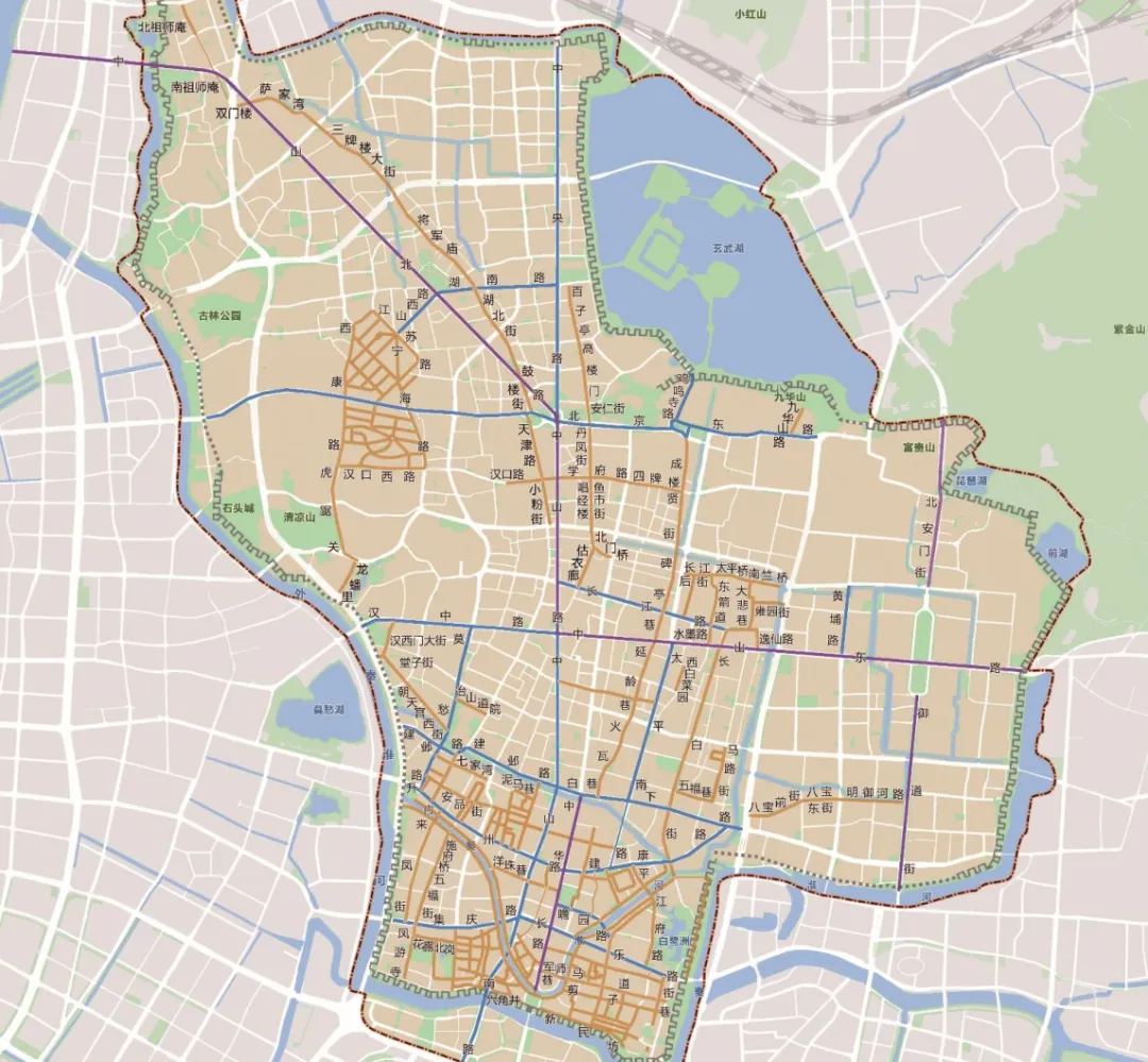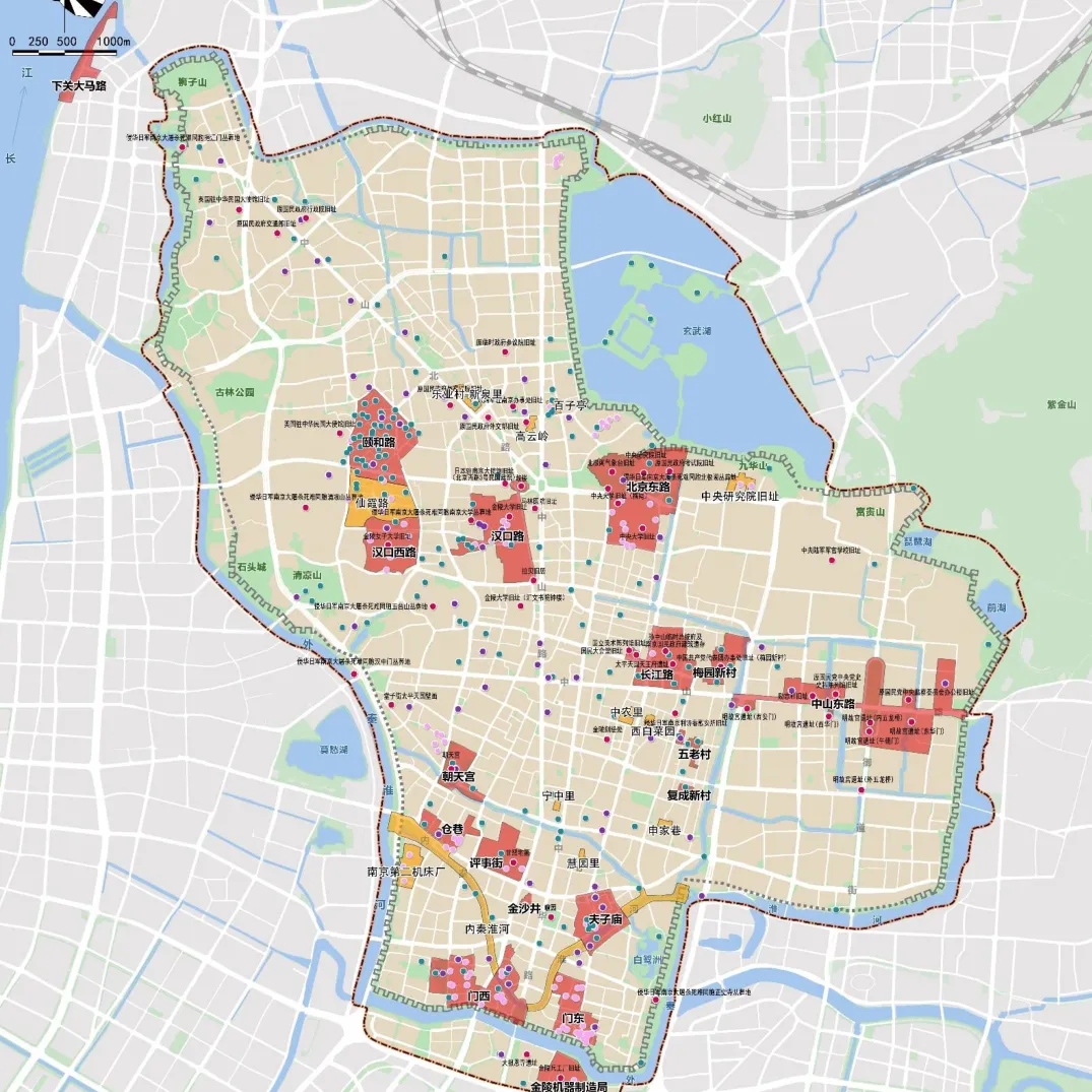 历史城区更新:加强南京历史城区的城市更新工作,将历史城区作为城市更新的重点地区,在历史城区的更新中应做到保护优先,采用多元手段展示历史格局。