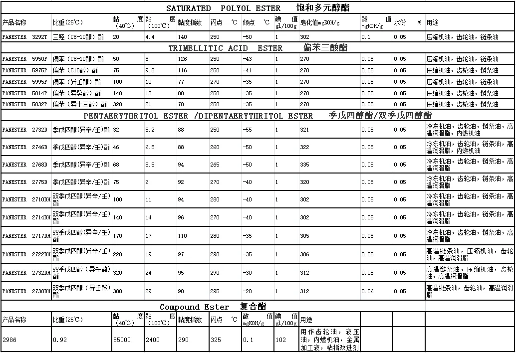 合成酯基础油