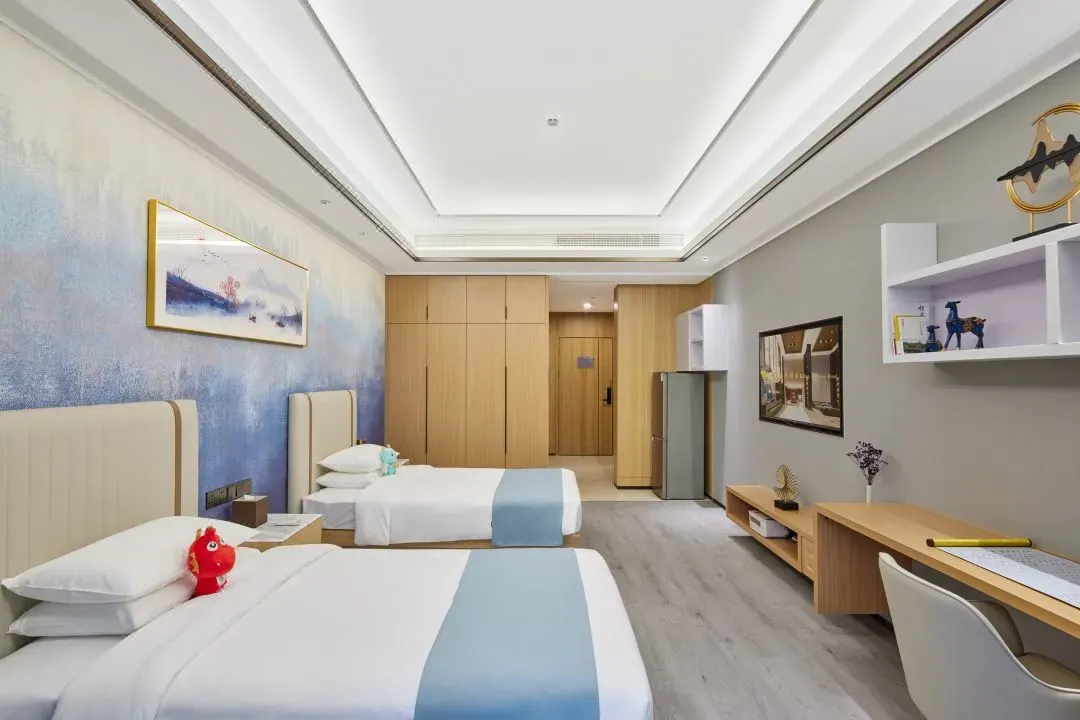 空调、液晶电视、智能灯光色控制、免费WIFI无线上网、独立卫生间……所有房间设施配备完善,设施齐全,豪华双床房,满足家庭、朋友出行需求。