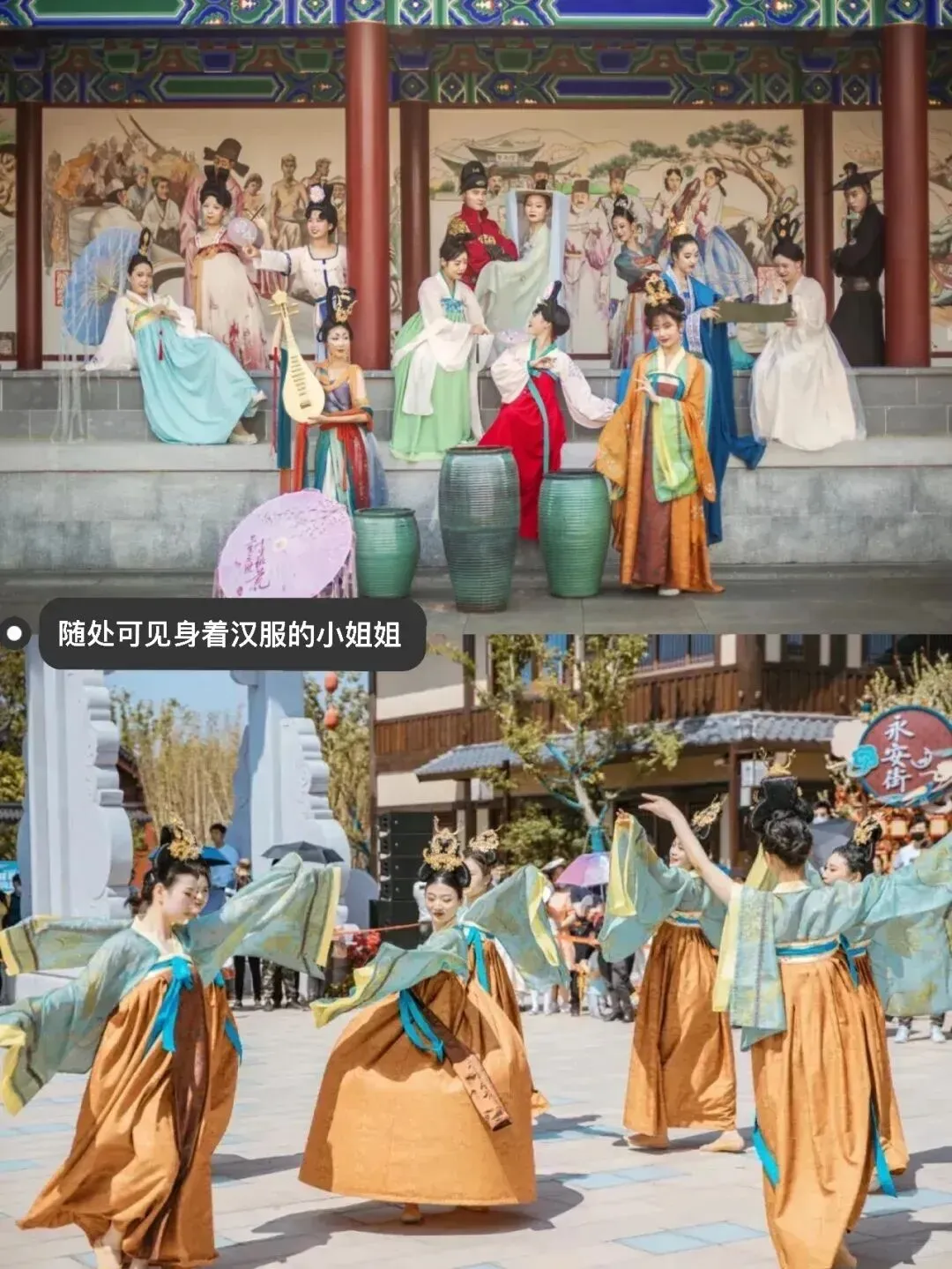 2. 演出与互动:全天20+场免费演出(《长乐未央》歌舞、四大才子互动、科举主题巡游等),NPC互动、汉服妆造旅拍全覆盖