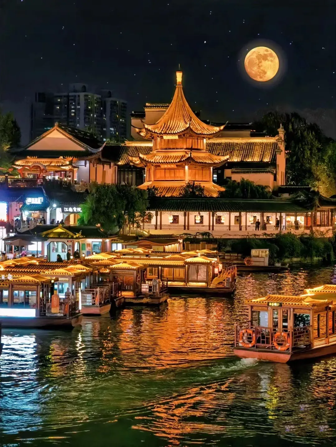 最美金陵不夜天,十里秦淮,桨声竹影,泛舟河上,吹一吹秦淮河的晚风,感受一下独属于南京的浪漫。