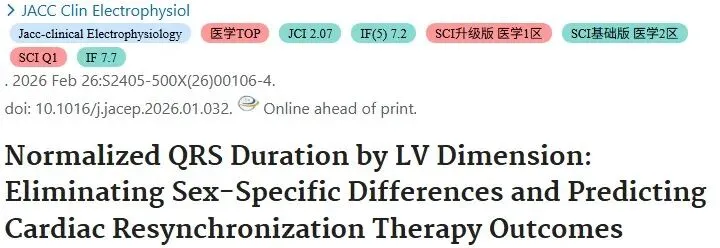 文章题目:按左心室大小标准化的QRS波群时限:消除性别特异性差异并预测心脏再同步治疗结局