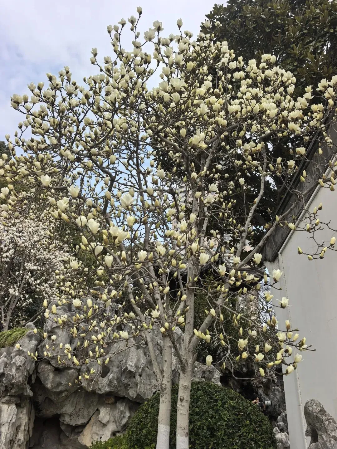 胡家花园有假山奇石,我看不懂,我喜欢看的是里面的花草,初春时节,玉兰花和梅花最美。这个时节的玉兰花未完全绽放,婉如青春少女,可惜我未能拍出她的美。