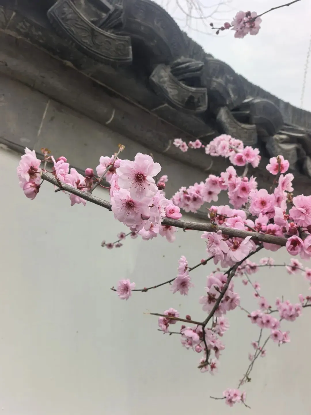 湖西南一处建筑的墙下,有几株梅花,几近假花,凑近确有香气。
