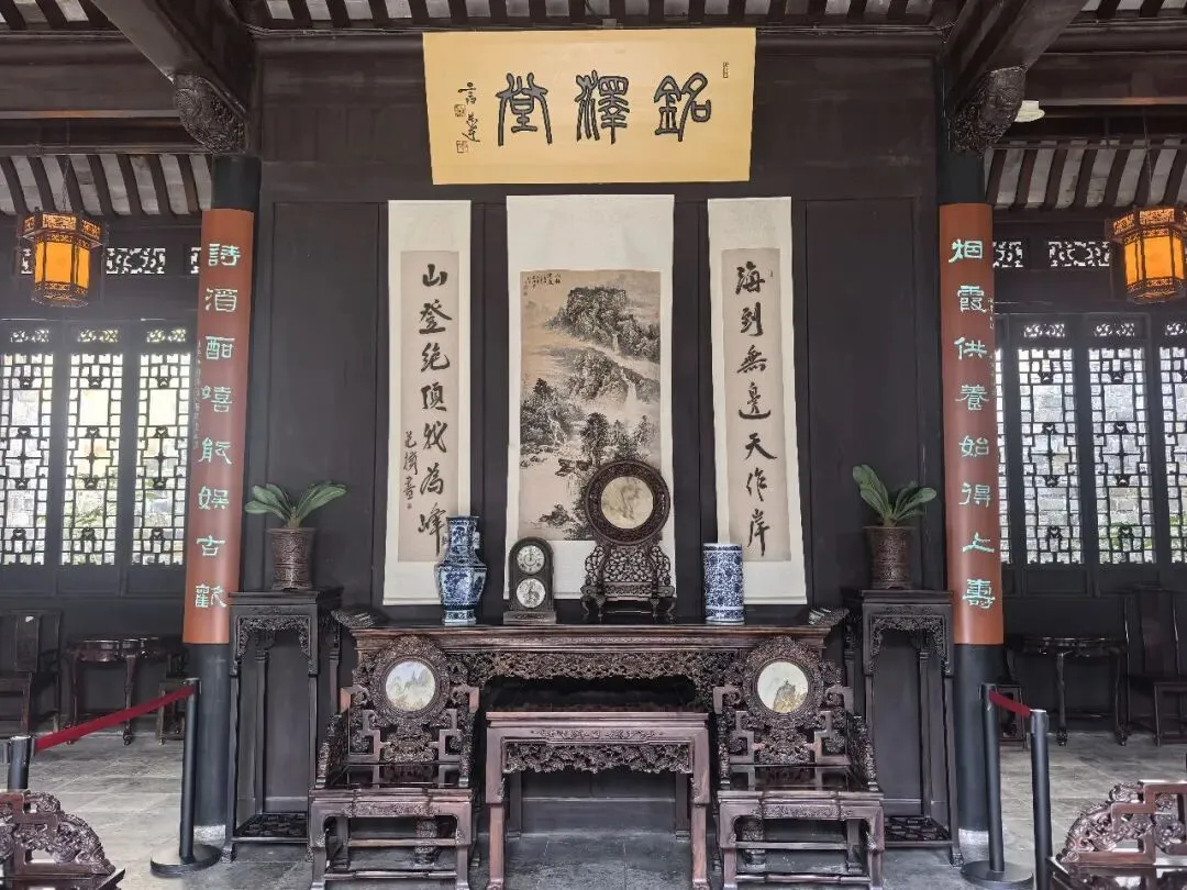 铭泽堂,胡家花园建筑均为木结构,保存完好的柱子还是那么圆润、牢固。