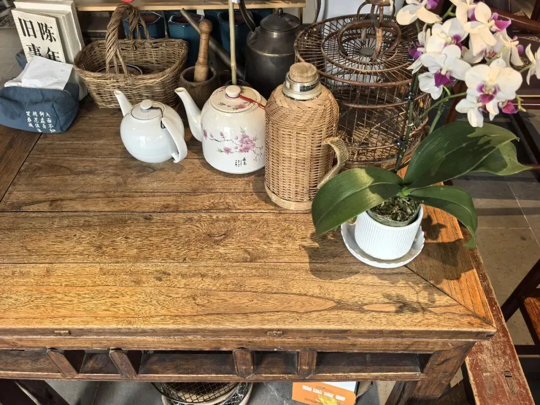 愚园,对面是一家茶馆。茶馆的老板五十岁左右的年纪,面白无须,热情周到,是个传统的茶倌。茶馆里整日播放着苏州评弹,刚开始以为是南京白局,这一次请教了老板才知道。去年秋天我在此喝过一次茶,茶具是仿古的,我当时喝茶的心境也是仿古的,觉得很受用。