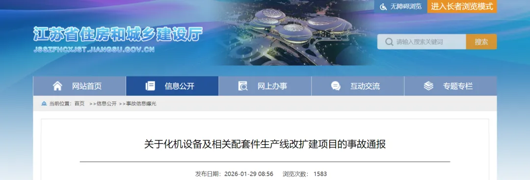2026年1月23日12时20分左右,由尹*亮(个人)施工的化机设备及相关配套件生产线改扩建项目,发生一起生产安全一般事故,现通报如下: