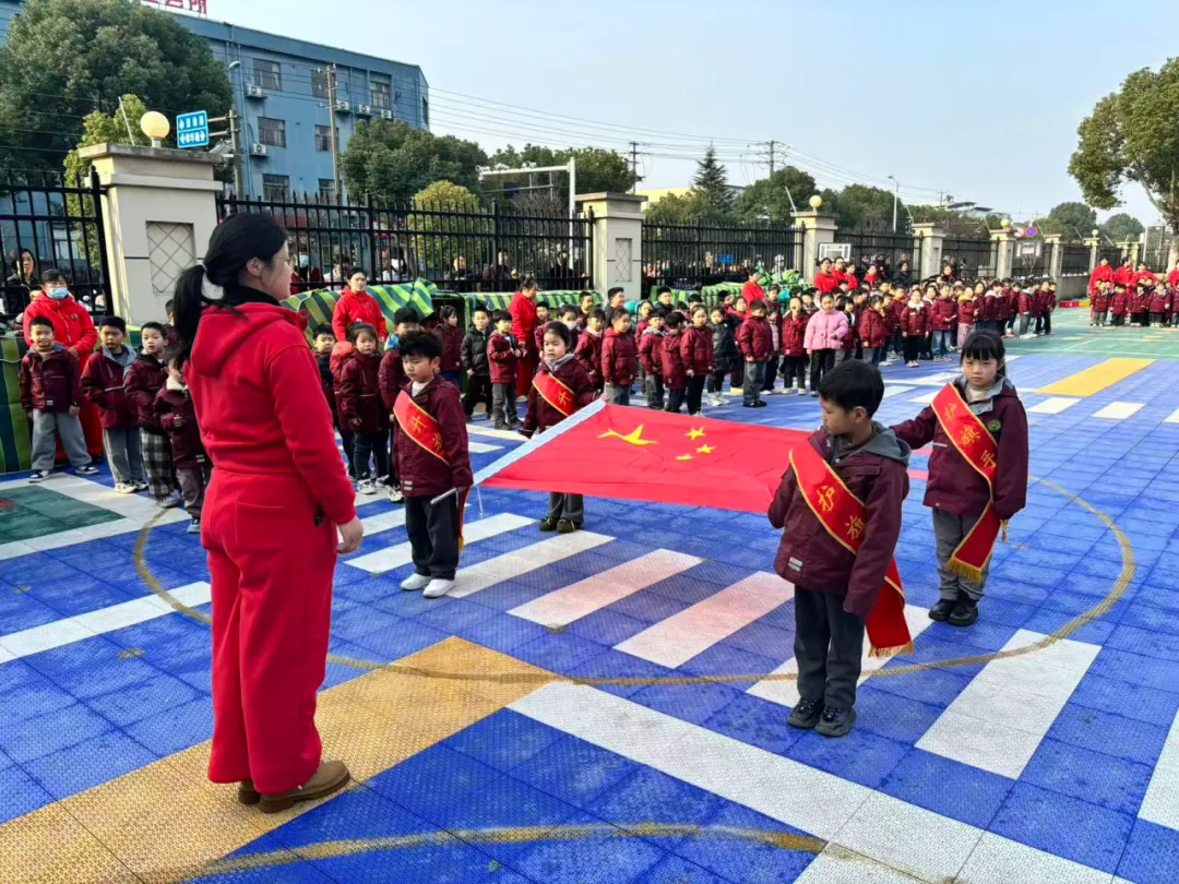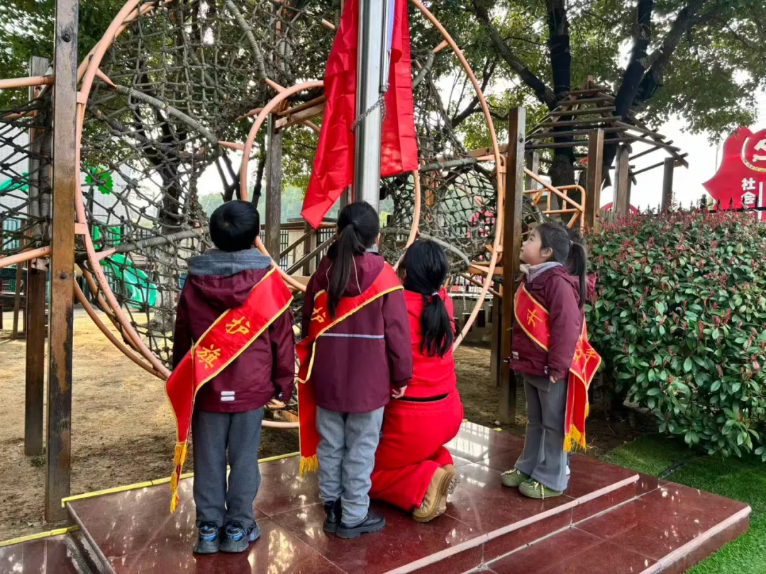 激昂的国歌声奏响,五星红旗缓缓升起。全园师生肃立注目,目光聚焦于迎风飞扬的国旗,齐声高唱国歌。歌声激昂又深情,满含对祖国的热爱与敬仰,每一个音符都诉说着对祖国的美好祈愿。