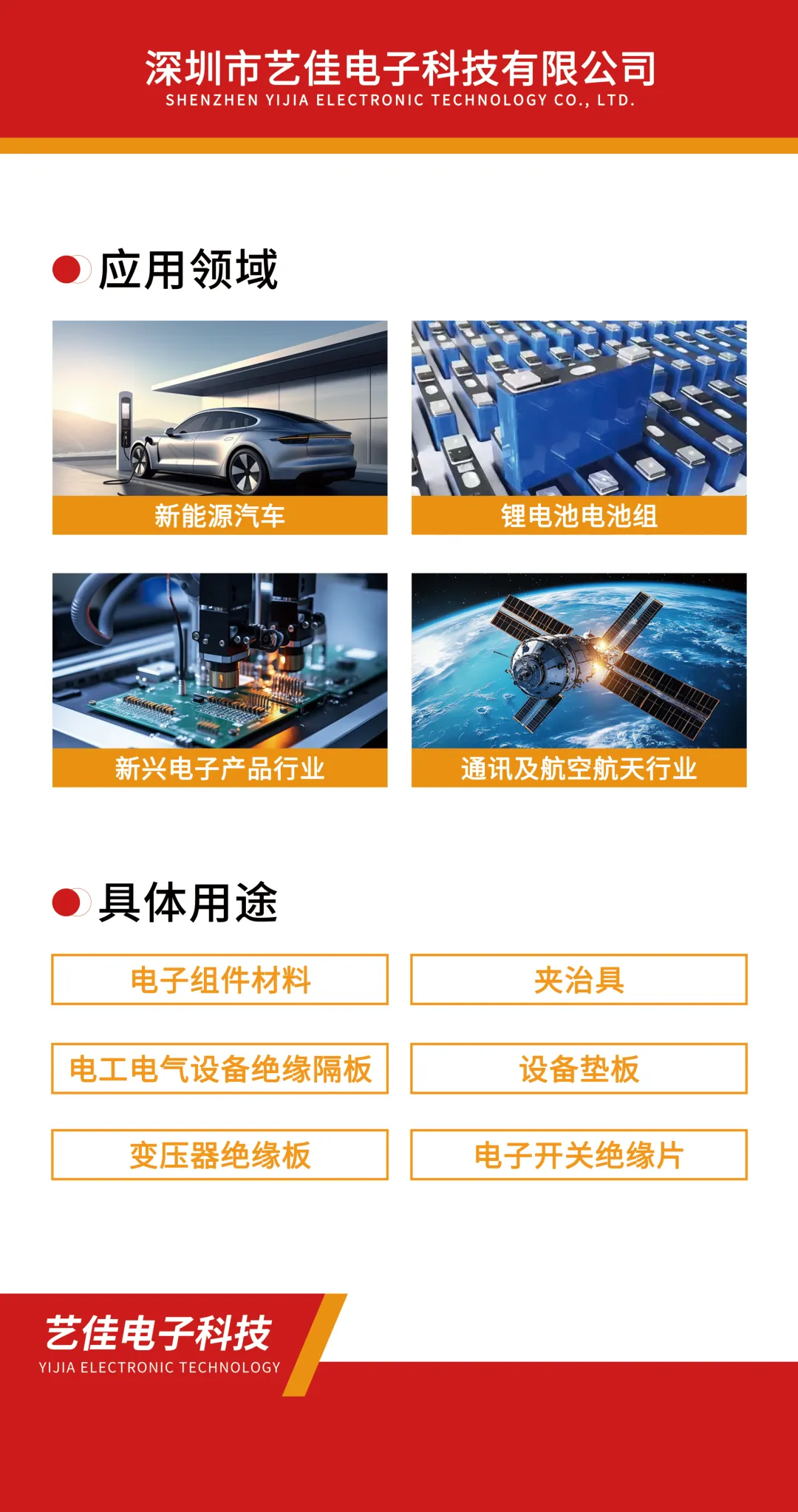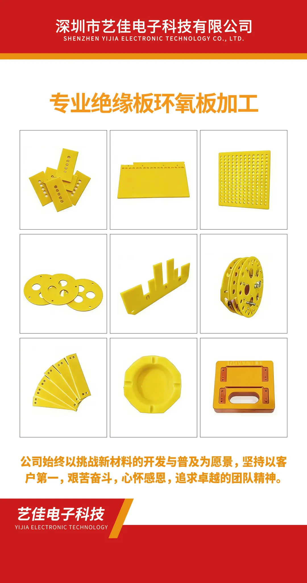 深圳市艺佳电子科技有限公司成立于2014年,是专注新材料领域开发和应用及精密加工为一体的成长型企业,专业专注环氧玻纤板制造以及环氧板、电木板、合成石等绝缘材料的精密加工。