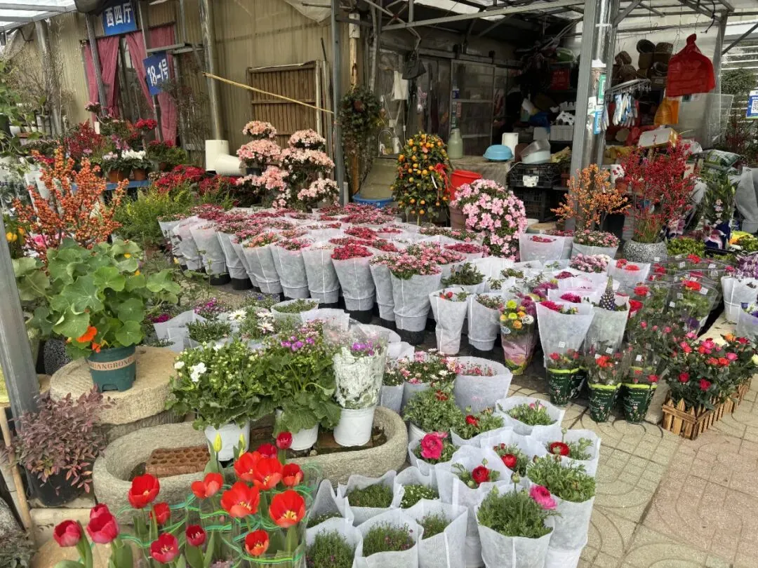 南京花卉西市场有90+家商户,有花卉盆景、观叶植物、鱼鸟、花盆等,品种齐全。