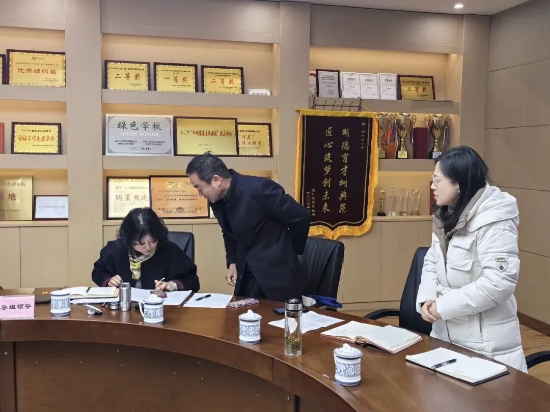 2026 年3月5日下午,南京江北新区教育局开学视导组莅临我校开展春季开学视导工作,郭悦主任带队,通过多环节检查指导,全面了解学校假期及开学工作开展情况,赵双滨校长携班子成员全程陪同迎检。