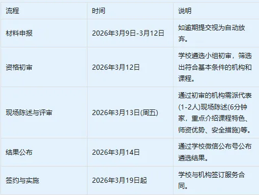 参选机构和课程须为《2025—2026学年栖霞区第三方机构参与中小学课后服务区级备选库》中准入的机构和课程,且相关课程项目须与我校课程需求匹配。