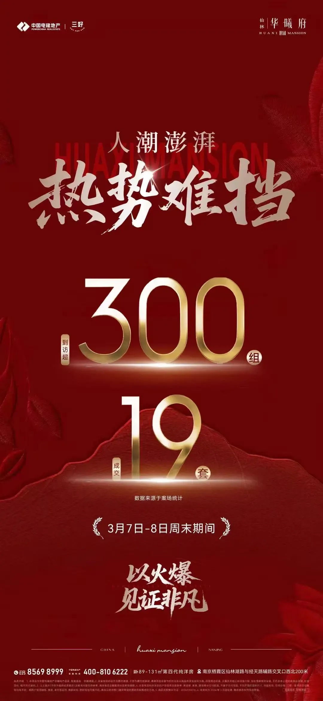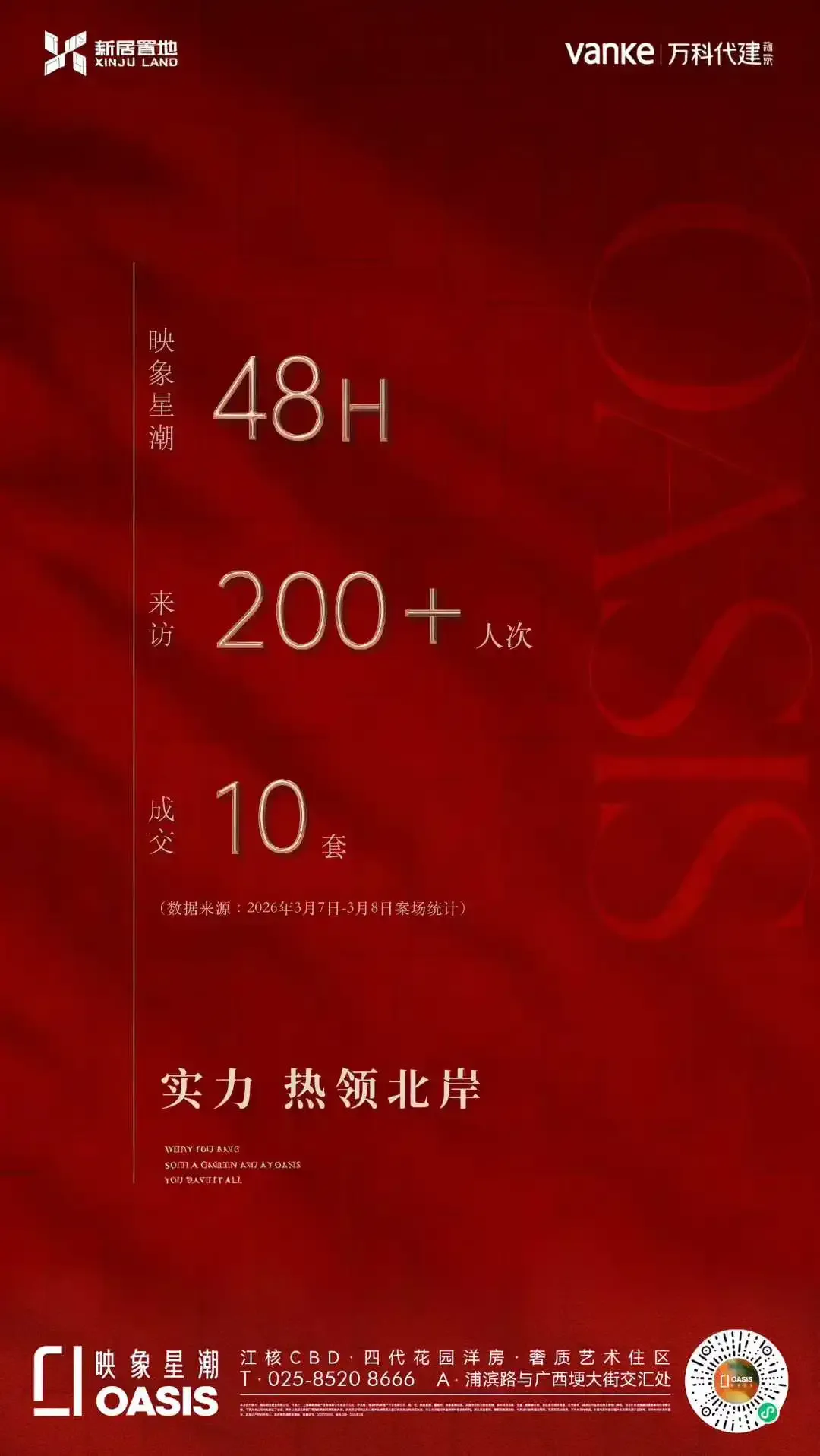 河西中部超级顶豪瑞玺,建面约200㎡四代先锋平墅,周末两天热销7000万+!仙林大热盘华曦府周末到访超300组,成交19套,非常火爆。江北的人才补贴力度最大,效果肉眼可见得好。江核的映象星潮,周末两天来访200+人次,成交10套。