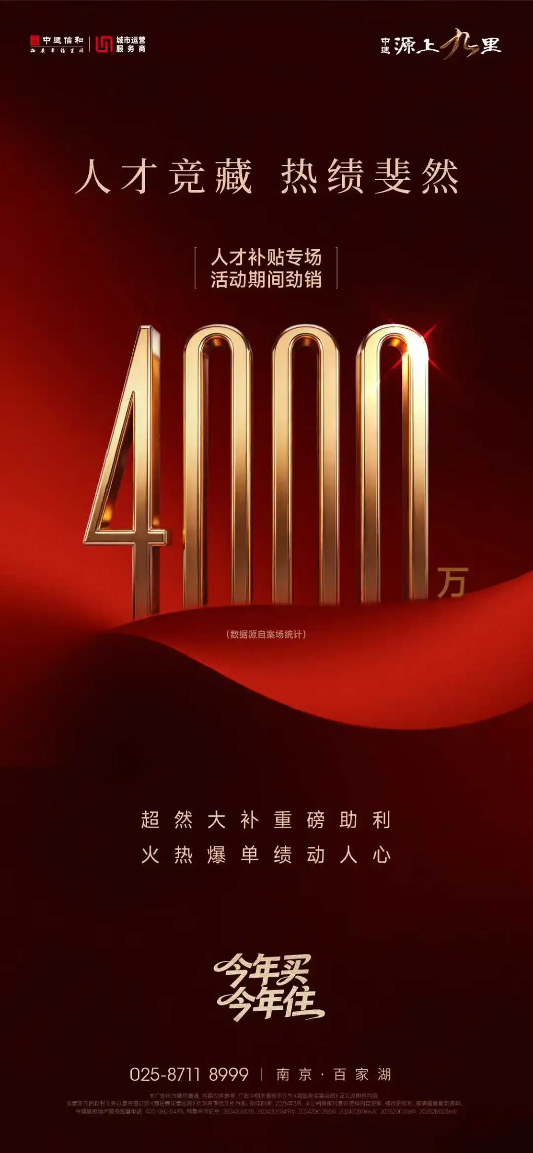 江宁百家湖板块的中建源上九里,人才补贴专场活动期间,劲销4000万。