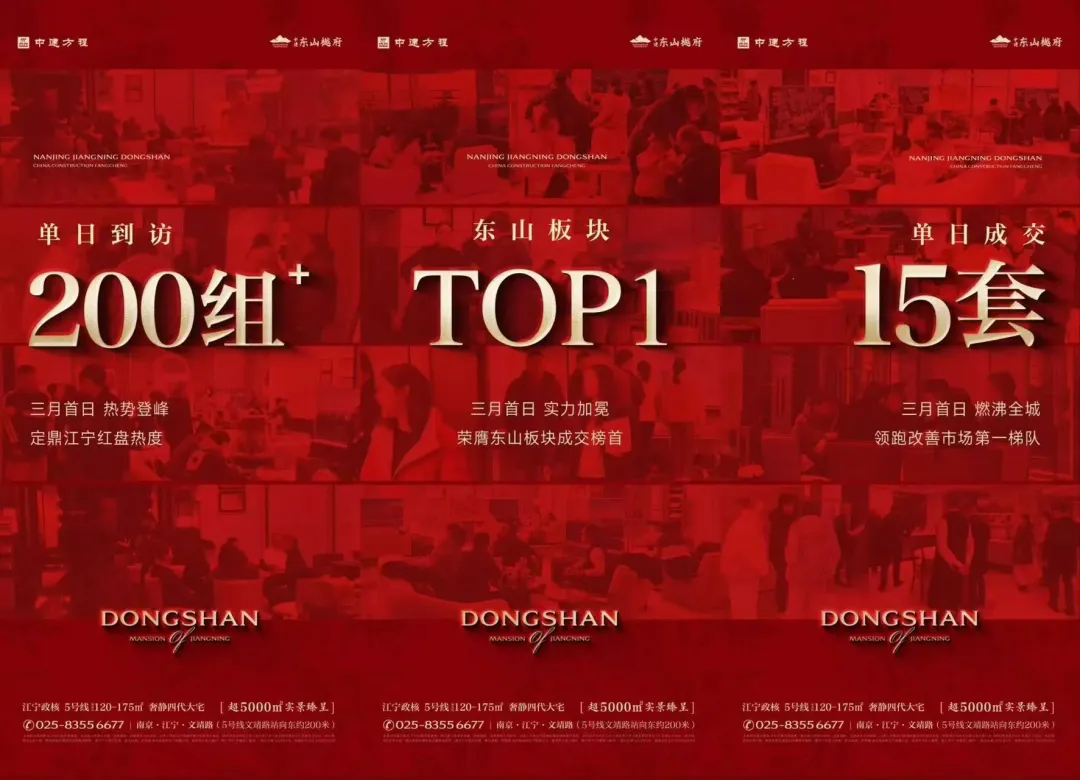 其中,樾满云川问鼎南京市3月成交套数、面积、金额 TOP1 “三冠王” ,上周末仅2天到访500+组、成交39套、破1.5亿;江宁金茂府领榜江宁3月总价500万以上,高端改善市场唯一TOP1,断层垄断江宁高端住宅市场占有率100%;东山金茂晓棠领燃江宁3月单价1.8-2.2 万/㎡项目,成交套数、面积、金额TOP1 “三冠王” 。