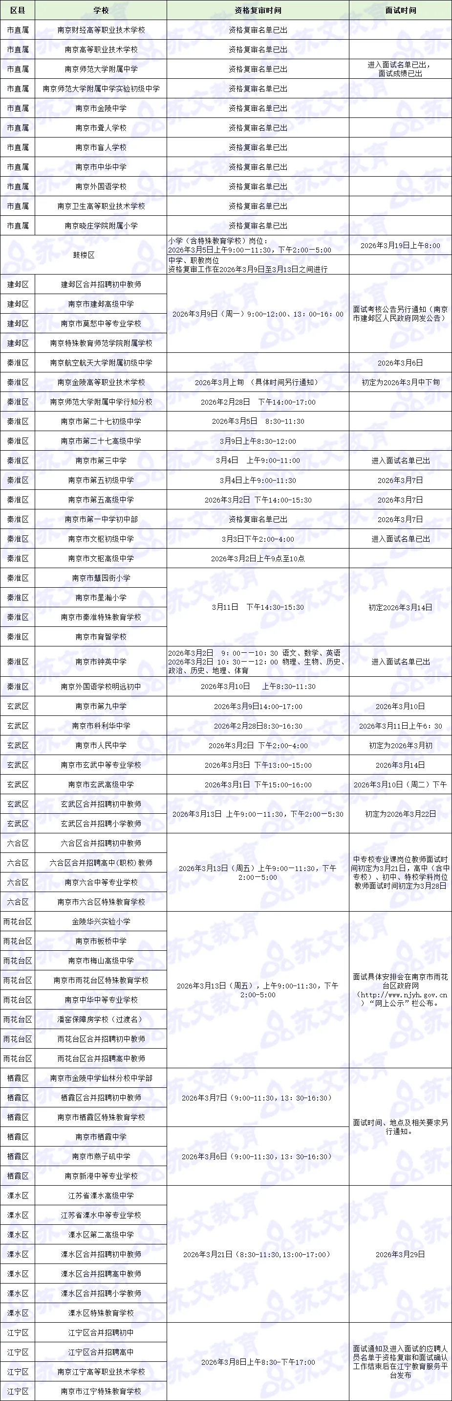 26南京教招资格复审面试公告年后密集发布,部分学校已面试!